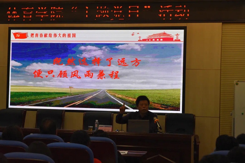 会上刘启定部长以“把青春献给伟大祖国”为主题讲授了一堂内容丰富,深入浅出,激情洋溢的党课。他指出我们当代青年人正处于我们国家高速发展的新时代时期,我们青年人既是幸运的,又是幸福的,幸运恰逢国家发展的黄金时期。