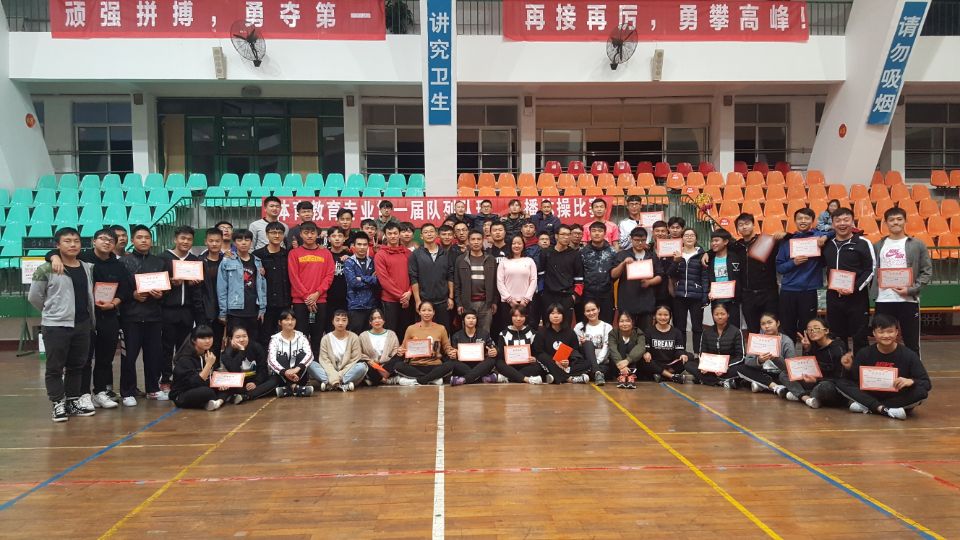 为了增强体育教育员工的教学能力,提升体育教育专业员工的专业技能水平,11月7日晚19:00在体育馆举办首届体育教育专业员工队列队形、广播体操比赛。本次比赛由2015级、2016级体育教育专业的员工参加,体操教研室的何伟兴、樊颖、陈斌斌三位体操专业老师担当评委,体育教育系主任齐立斌博士、副主任唐瑶函博士参与了全程组织。本次比赛公司领导十分重视,从赛事筹划、赛程安排、场地调动等公司领导都给予了大力支持。比赛过程中,体育艺术公司经理曹庆荣教授、副经理熊少波教授亲自莅临现场观看比赛,并为获奖运动员颁发证书。