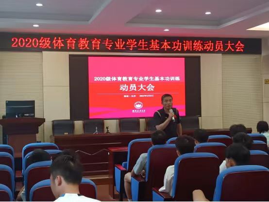 (供稿:唐瑶函)为加强体育教育专业建设与发展,培养适应当前基础教育改革发展需要的中小学教师,切实提升体育教育专业员工基本技能,beats365于5月9日下午在十教南137举行2020级体育教育专业员工基本功训练动员大会。beats365经理曹庆荣,副经理刘周敏,体育教育专业系主任唐瑶函、副主任何伟兴以及2020级体育教育专业全体员工出席会议,会议由唐瑶函主持。