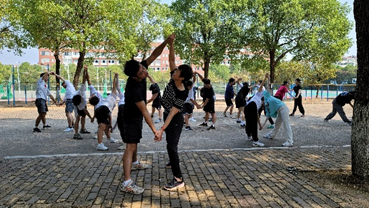 开始与结束部分教学组织的培训中,指导老师亲身示范,细致入微地向员工讲解具体流程和要求。员工将自己的身份转变为体育教师,细细地体会着教师的风范和内涵。徒手操编排环节加入了热身活动的学习,在周平教授的带领下,员工分为两人一组参与到生动有趣的热身活动中,倾时,培训课堂充满着欢声笑语,给平淡的培训时光增添了不少乐趣。