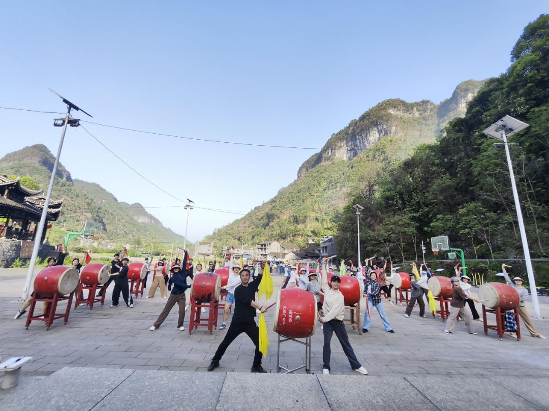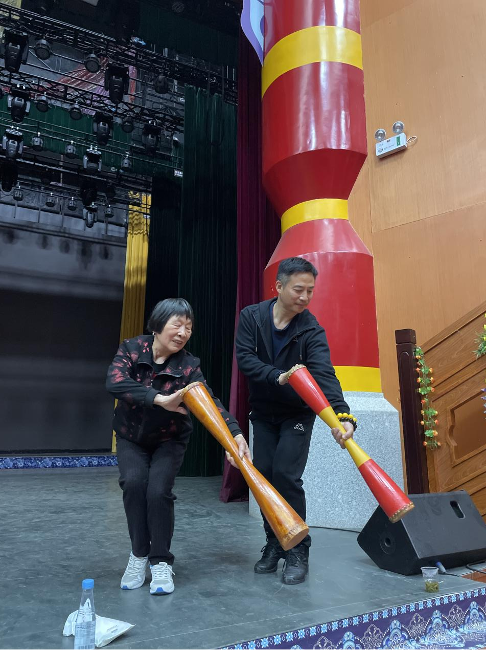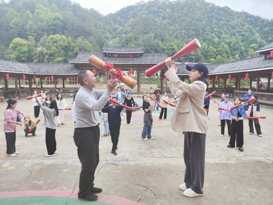 员工们到达了瑶族长鼓舞的发源地,向瑶族长鼓舞民间艺人冯茂林老师学习。冯老师向员工们讲解了瑶族长鼓舞的发展历史和特点,详细介绍了长鼓的制作方法、演奏技巧和舞蹈动作要领。此外,员工们还拜访了苗鼓传承人石金琦老师,向他学习迎宾鼓之苗鼓神韵。在和两位老师的学习交流中同学们深刻感受到了苗族舞蹈的独特魅力。