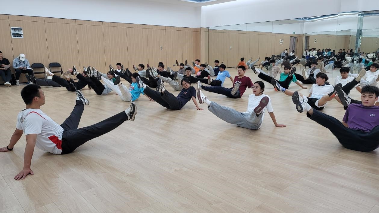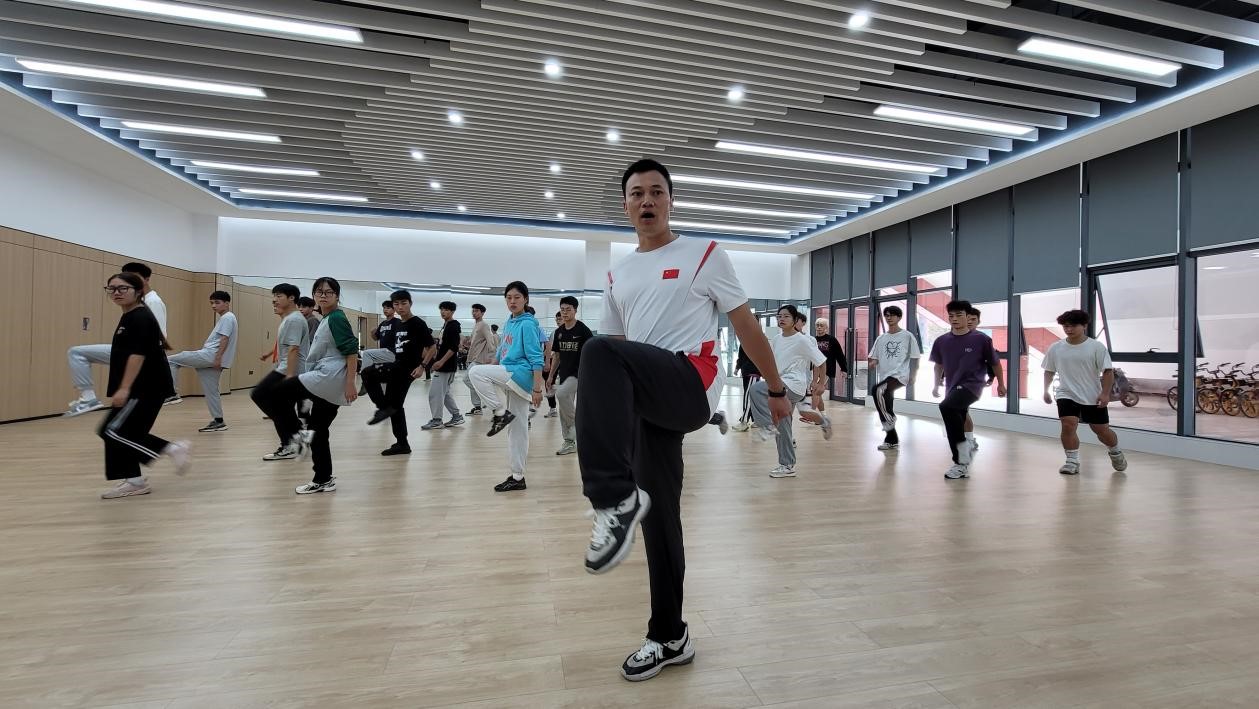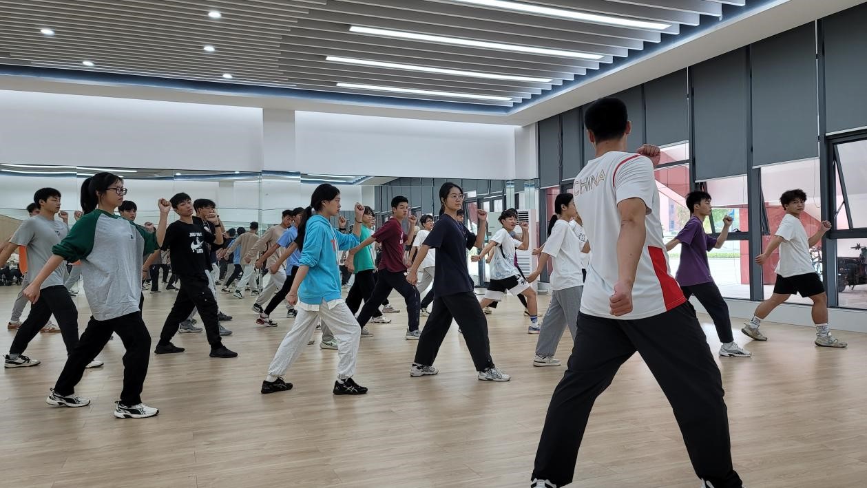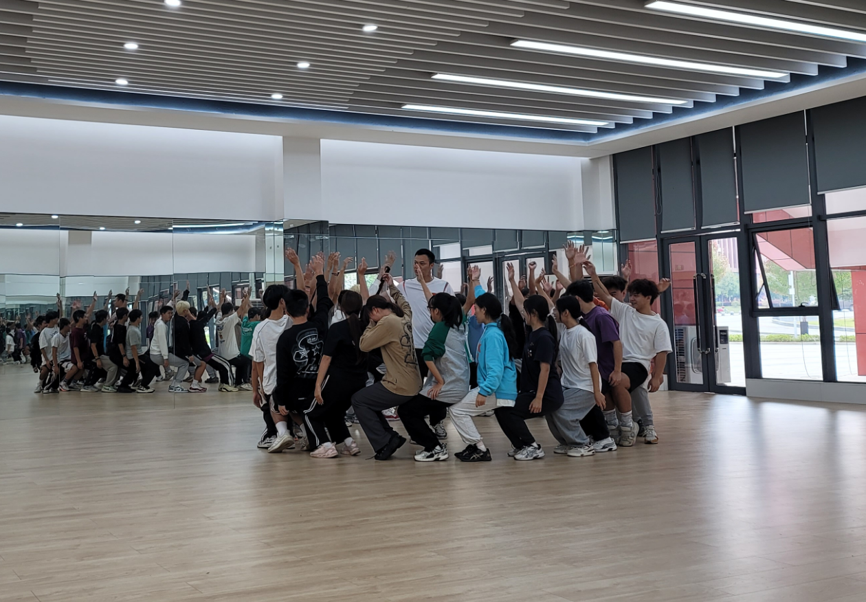 本次公开课主讲内容为学习全国大众锻炼标准三级健美操。课程开始,主讲人何伟兴带领同学们进行了专项热身活动,在此期间通过游戏来活跃课堂气氛。