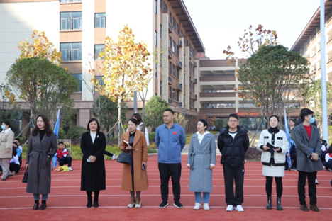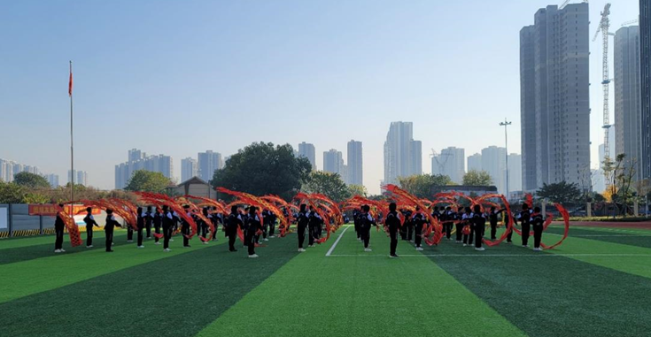 授牌仪式后,公司各领导与长郡双语雨花中学老师们一起移步田径场参观实习汇报演出。