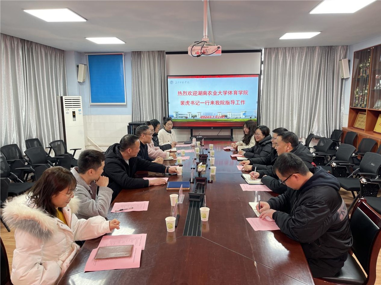 王义学对裴虎一行表示热烈欢迎,并简要介绍了长沙师范公司体育科学公司的办学历史、办学理念等,详细分享了教学、科研、员工管理等方面的工作举措和工作方法,双方就党建工作、课程思政、人才培养、品牌打造、社会服务等方面进行了深入交流与热烈讨论。