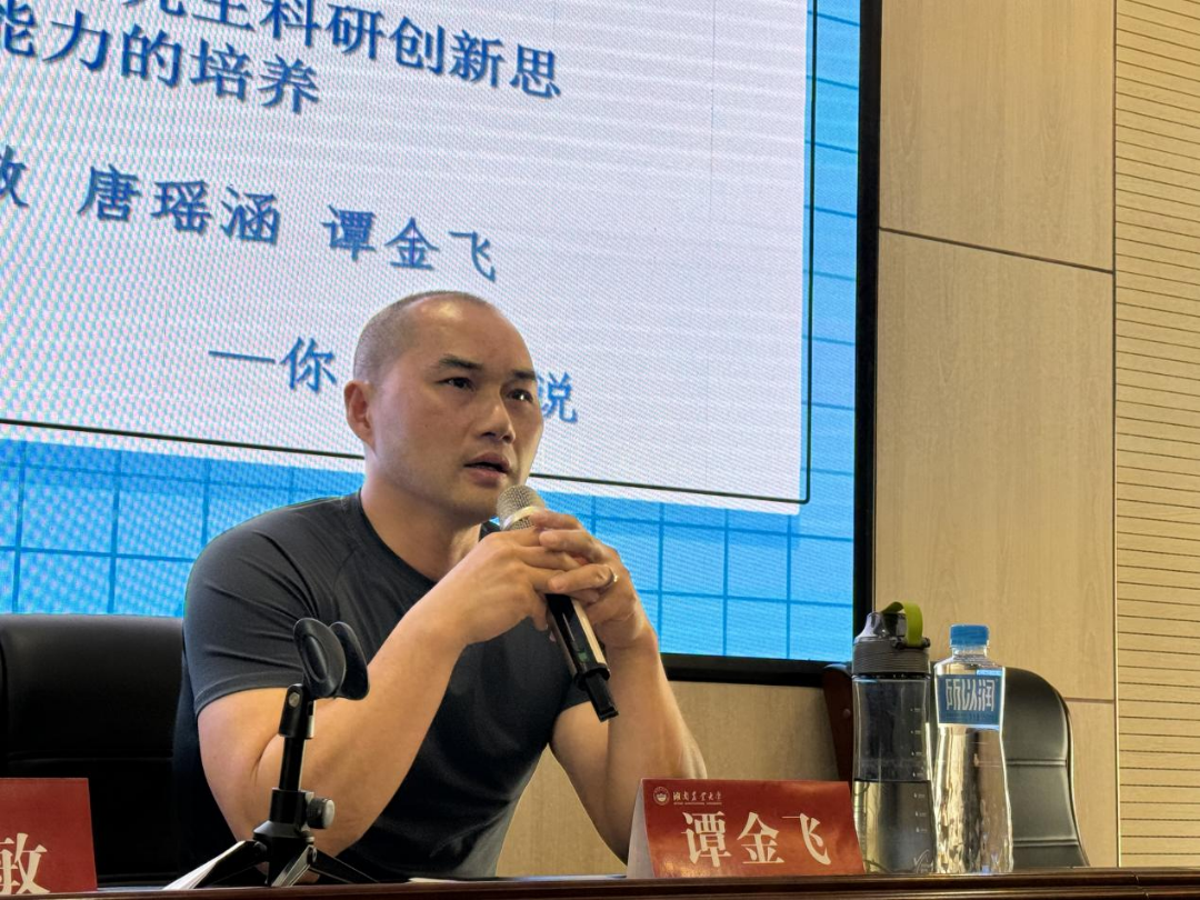 谭金飞老师向同学们分享了他认为在研究生求学过程中最为重要的六个字:目标、平台、能力。他建议同学们作为一名体育人应跳出体育来看体育,多参加学术讲座,了解不同的科学研究领域;着重培养信息获取能力与创新思维能力,每个人找到自己的侧重点。最后,他还以自己近期的亲身经历举例,鼓励大家积极思考、善于发现、努力探索。