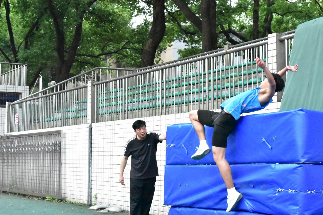 实践应用,掌握动作。熊少波鼓励员工放松心态,将练习技巧实际运用到腾空过杆。在腾空过杆练习中,他不断轮流指导,耐心纠正每一位员工的动作细节,确保他们过杆动作规范。