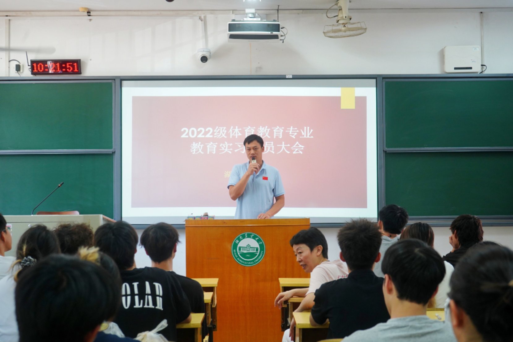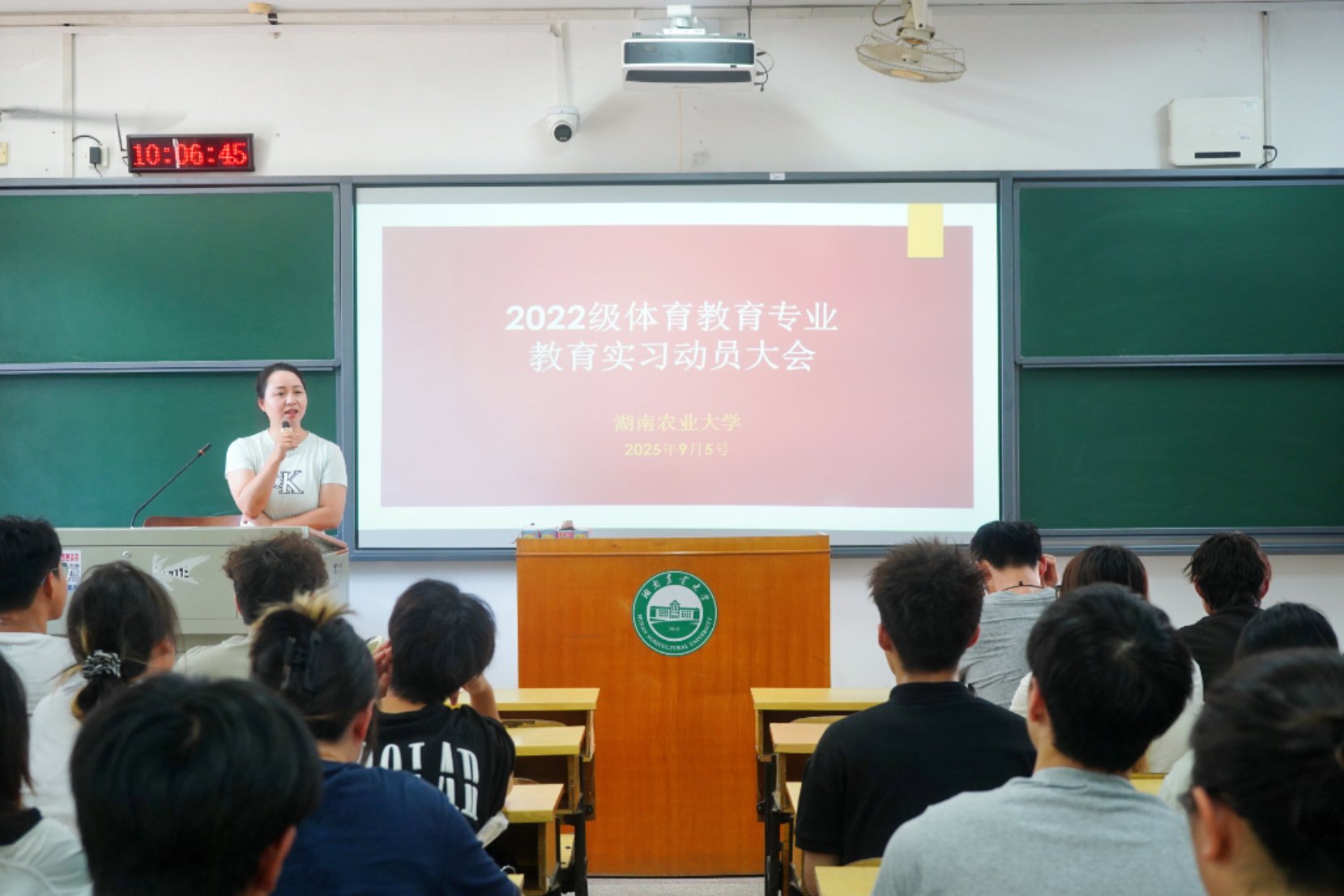 唐瑶函介绍了实习安排与纪律规范。今年公司共派出14支实习队分赴长沙市各中小学开展实习。她强调,实习生须端正态度、遵守规章、认真备课、全心投入。并寄语全体同学,希望大家以饱满热情和扎实作风投身教育实践,不断提升教学能力,规范行为举止,展现农大学子的良好风貌。