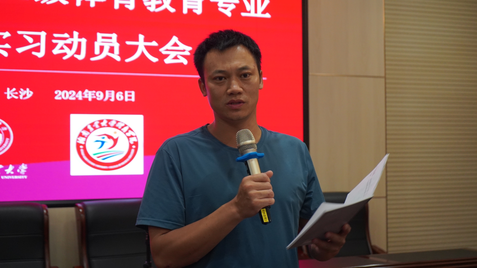 会上,裴虎讲解了教育实习对于体育类师范生的重要性,并从身份观念、行为规范、实习安全等方面对教育实习提出具体要求。他强调,实习中要转变员工身份,要有体育教师的意识和身份认同,严格遵守实习规定,保持良好的职业操守和团队合作精神,虚心求教,认真学习;在教学过程中要认真备课、着装规范,课上按照教学程序进行授课,高质量完成实习工作;同时希望所有实习生在实习过程中注意课堂安全、要注重自我保护,在遇到问题时及时向指导教师求助,加强与校内外指导教师的沟通交流。