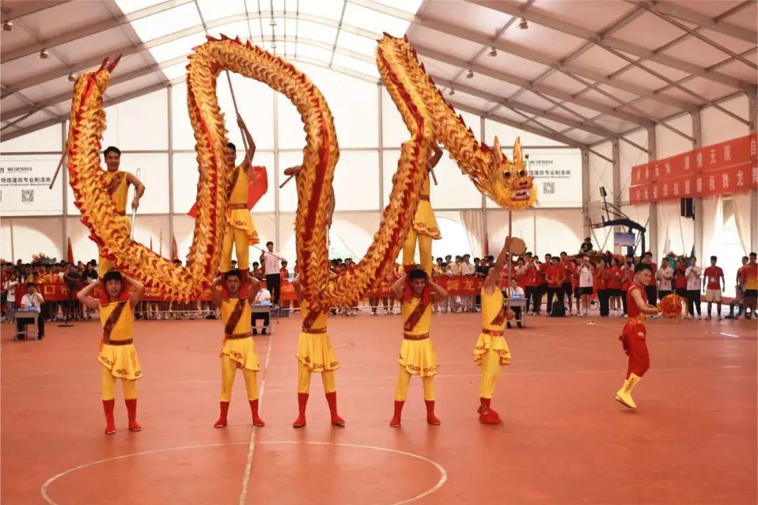 (图为男子规定舞龙项目比赛中)