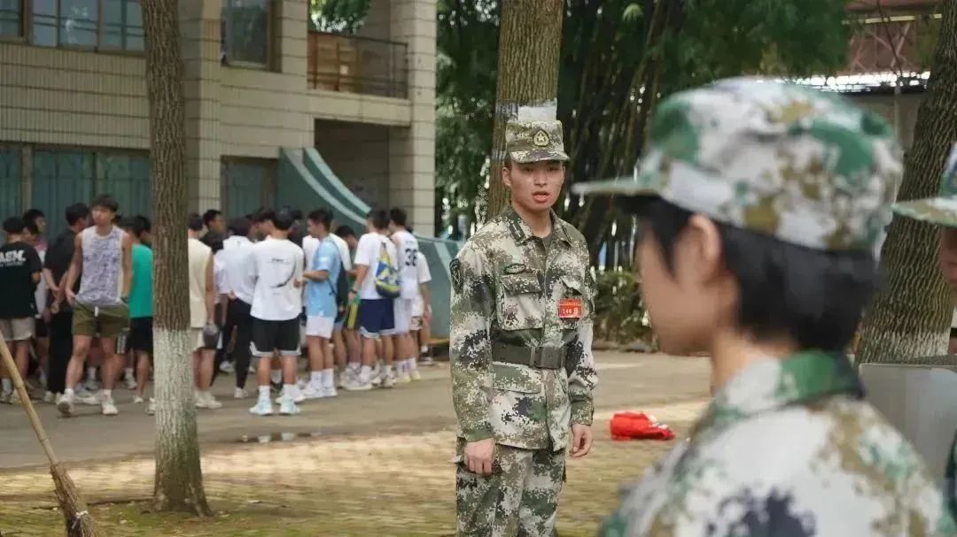 整齐的队形,高亢的口号,在教官的声声指导中,挺直腰板、目视前方、步履铿锵、目光坚定,迷彩帽下稚嫩的脸庞也变得刚毅有力。