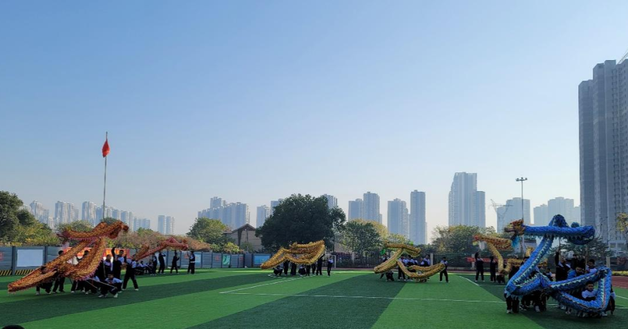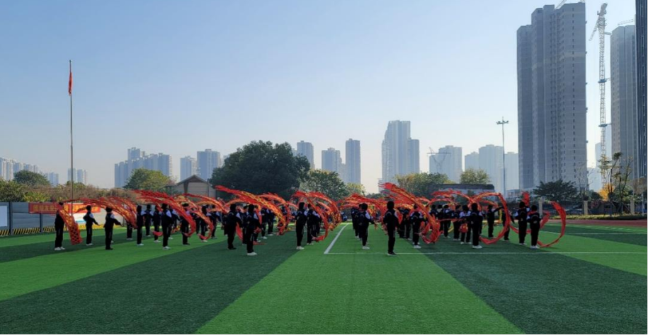 授牌仪式后,公司各领导与长郡双语雨花中学老师们一起移步田径场参观实习汇报演出。