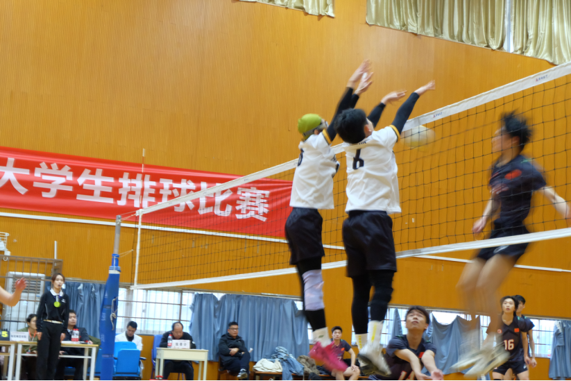 18号张云杰、6号陈沚熙严密拦网得分