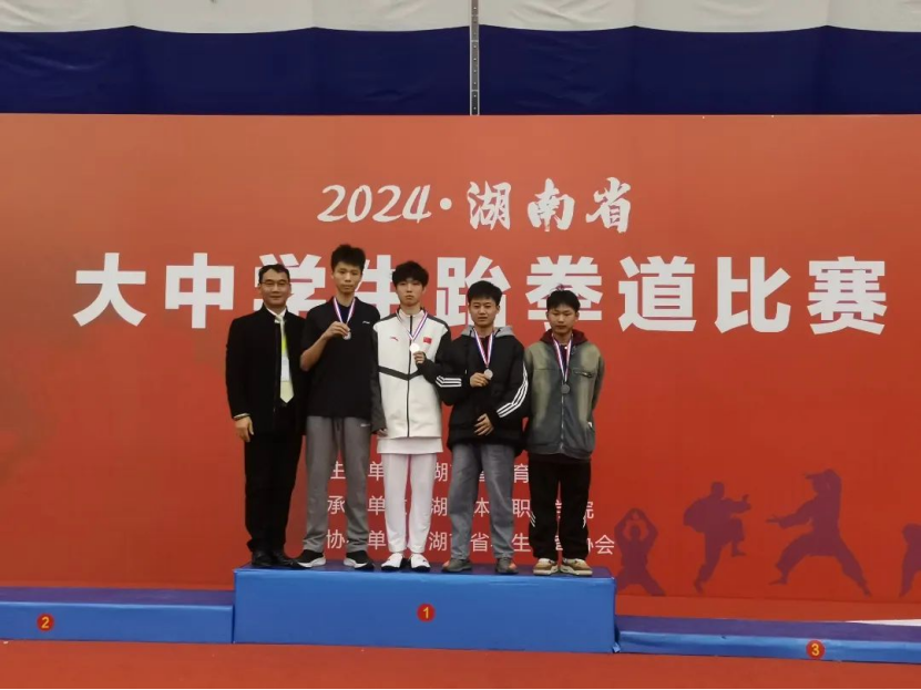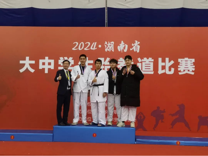 在男子个人竞技赛中,队员曾齐晟在高水平丙组74kg比赛中首场战胜衡阳师范公司队员,进入第二轮就遇上全国青年跆拳道锦标赛冠军湖南科技大学选手,他凭借超凡的技战术,运用连续高位横踢、下劈、里合、后踢和后旋踢等技术战胜了对手进入前四强,最后他敢打敢拼一路过关斩将荣获冠军。傅萧湘在高水平丙组63kg比赛中,连续遭遇劲敌,与湖南科技大学、湖南工业大学、湖南师范大学选手逐一对决,战胜三轮选手挺进决赛,决赛与湖南工业大学选手进行比拼,第一局以大比分获胜,第二局最后6秒被对方一个上头反超1分,在第三局决胜局比赛中,他拼尽全力、竭尽所能一直领先比分,最后3秒痛失金牌获得银牌,但他顽强拼搏的精神和敢拼敢冲的劲儿让每一位观众折服,憾负之下虽败犹荣。林嘉翔凭借出色的表现获得甲组87+kg级金牌;谭逸轩凭借扎实的技术经过5轮比赛角逐,获得体育专业乙组80kg级银牌。