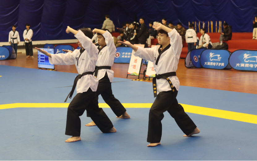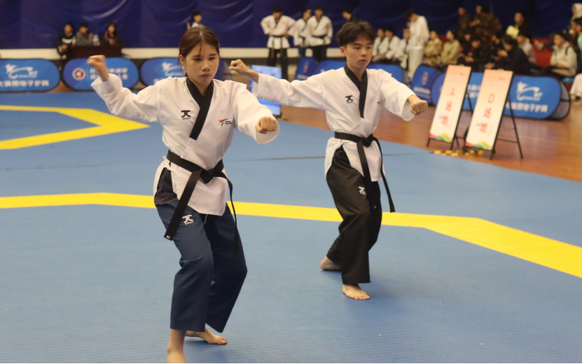 在品势项目赛场上,公司选手同样表现卓越。团体品势项目赛场上,李林嘉、胥九源、龚悦组成的甲组女子团体品势阵容,凭借默契的配合和精湛娴熟的品势技术,夺得铜牌。梁果、邬光正、刘钰华组成的甲组男子团体品势阵容也夺得铜牌。刘瑶、钟芊、李晶晶组成的乙组女子团体品势阵容,他们用行动诠释了跆拳道精神,谦逊有礼、刚柔并济、动作标准,最终获得第五名。廉君、钟淇、李玮东组成的乙组男子团体品势阵容,用力与美、标准与整齐获得第六名。在混双品势比赛中,李林嘉、梁果荣获甲组混双第五名;武睿玮、邬光正荣获甲组混双品势第七名。品势队员的礼仪风貌、严谨与标准、奋进与精益求精,充分展现了湘农学子的精神风貌。