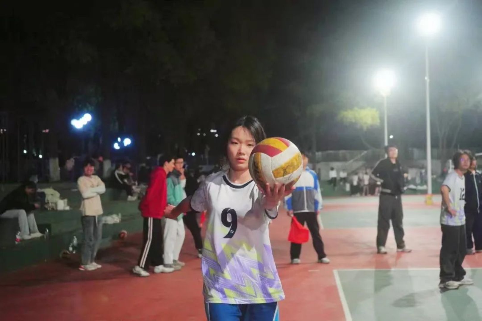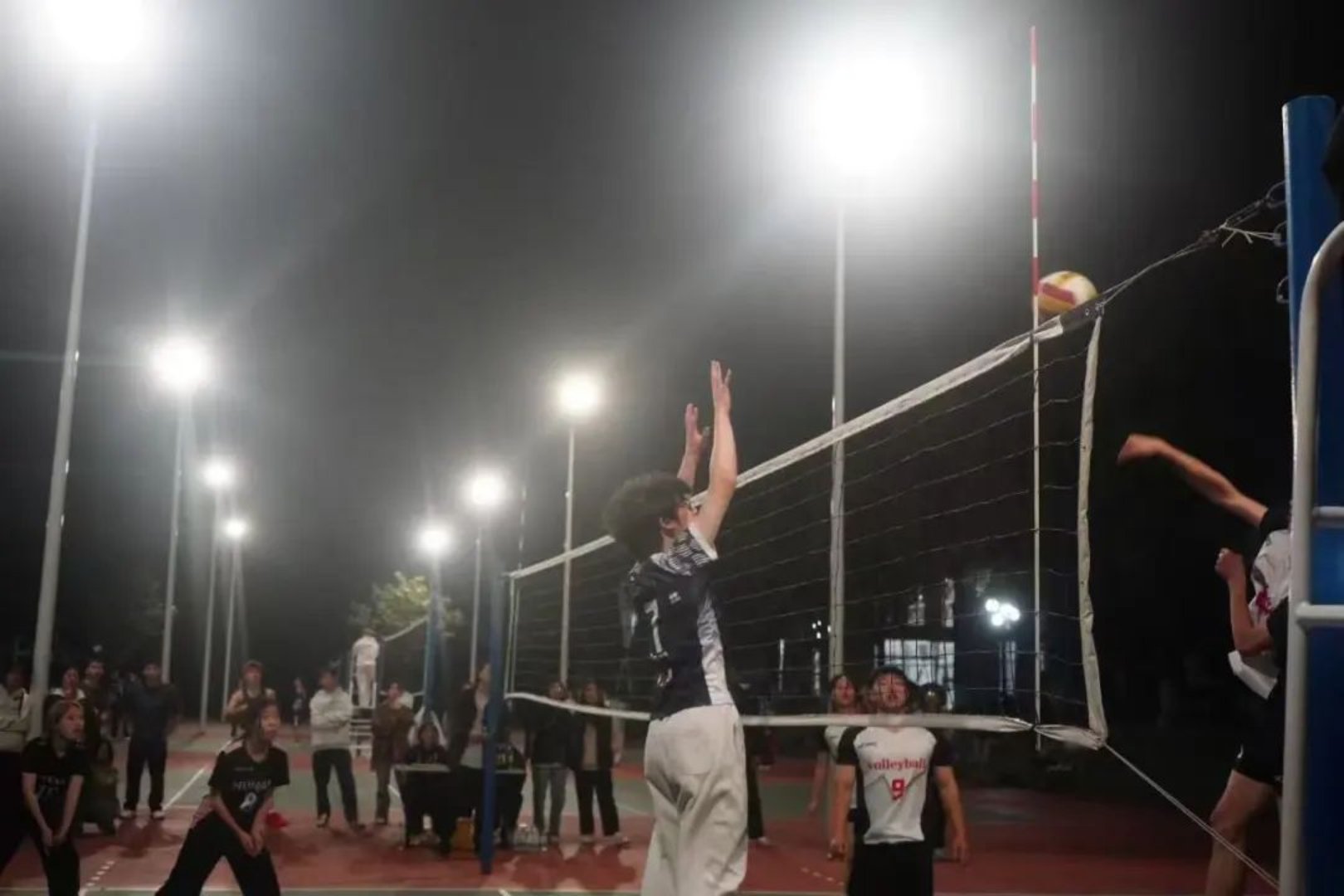 观众席上,助威声此起彼伏,呐喊声与战鼓声交织在一起,点燃了整个排球场的激情。这是青春的欢呼,这是热血的沸腾,这是属于排球人的狂欢。