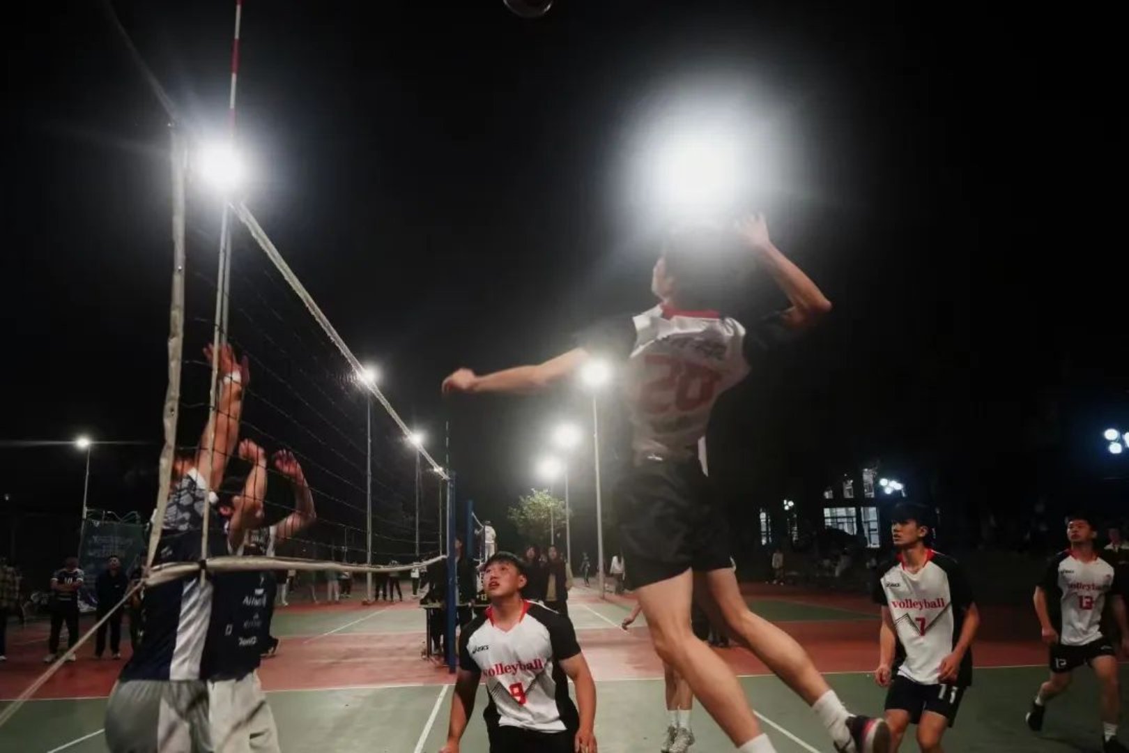 哨音一响,战火瞬燃。选手们迅速投入战斗,发球如闪电般迅猛,接球沉稳如山,传球流畅如水,扣杀凌厉如风。他们飞身救球,展现出永不言败的坚韧;强力扣杀,引爆全场沸点。队员们配合默契,战术执行精准,每一次得分都让现场气氛沸腾。