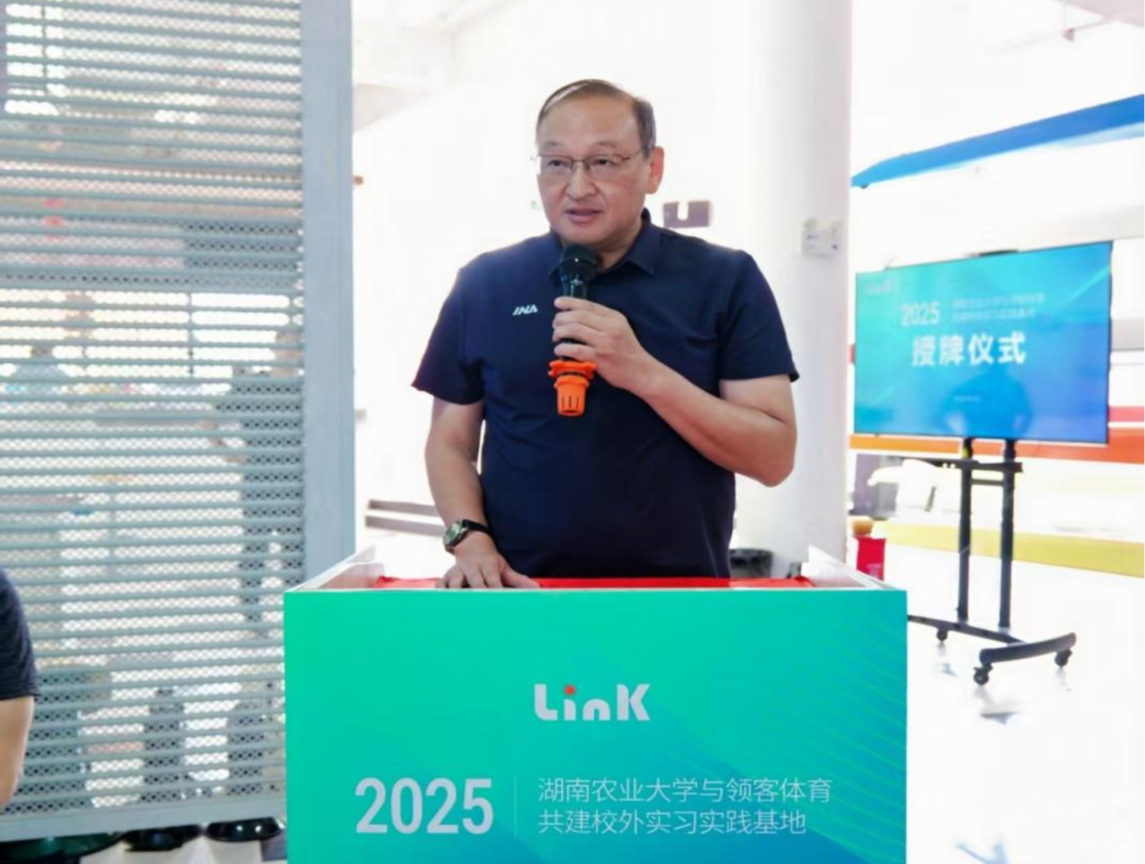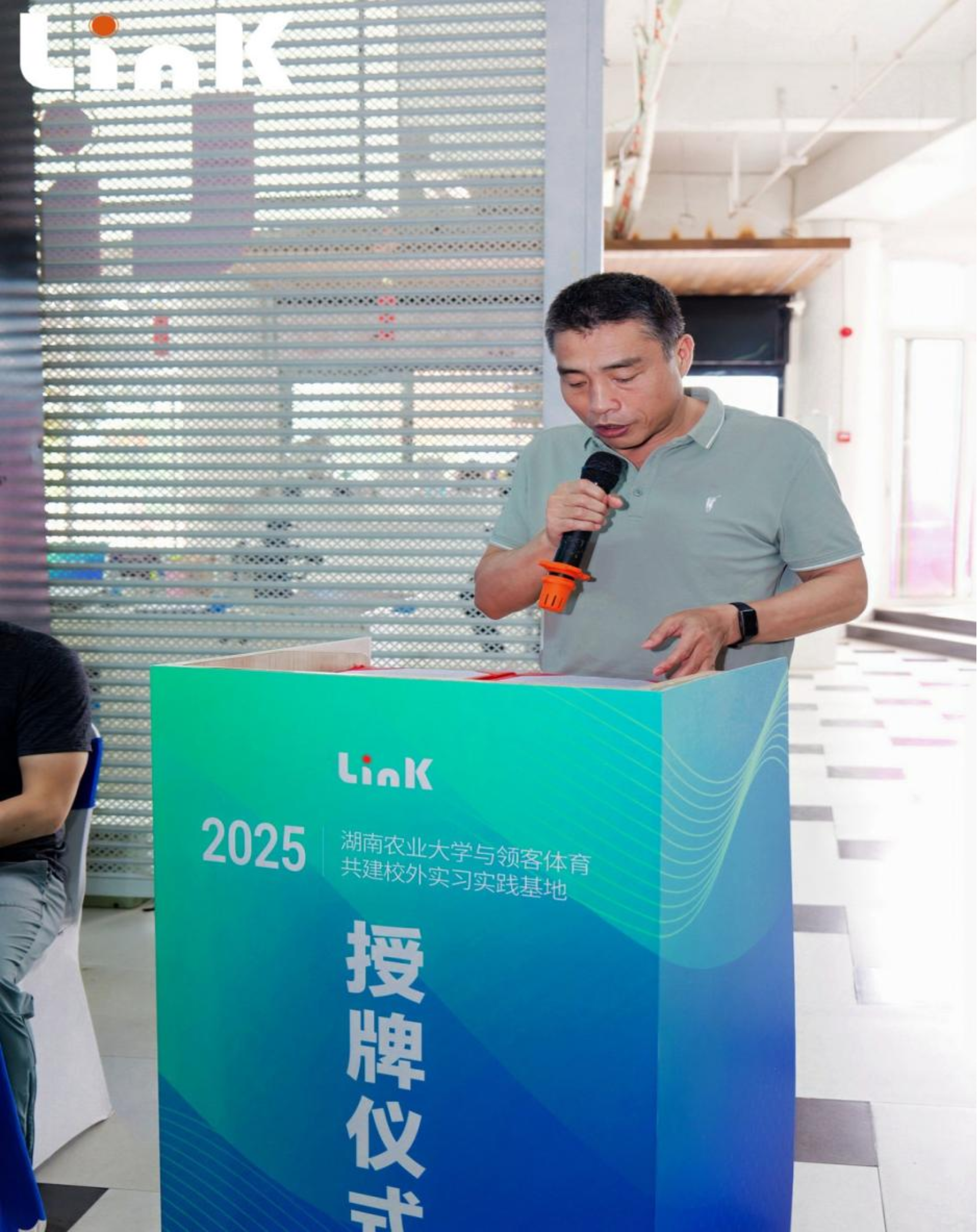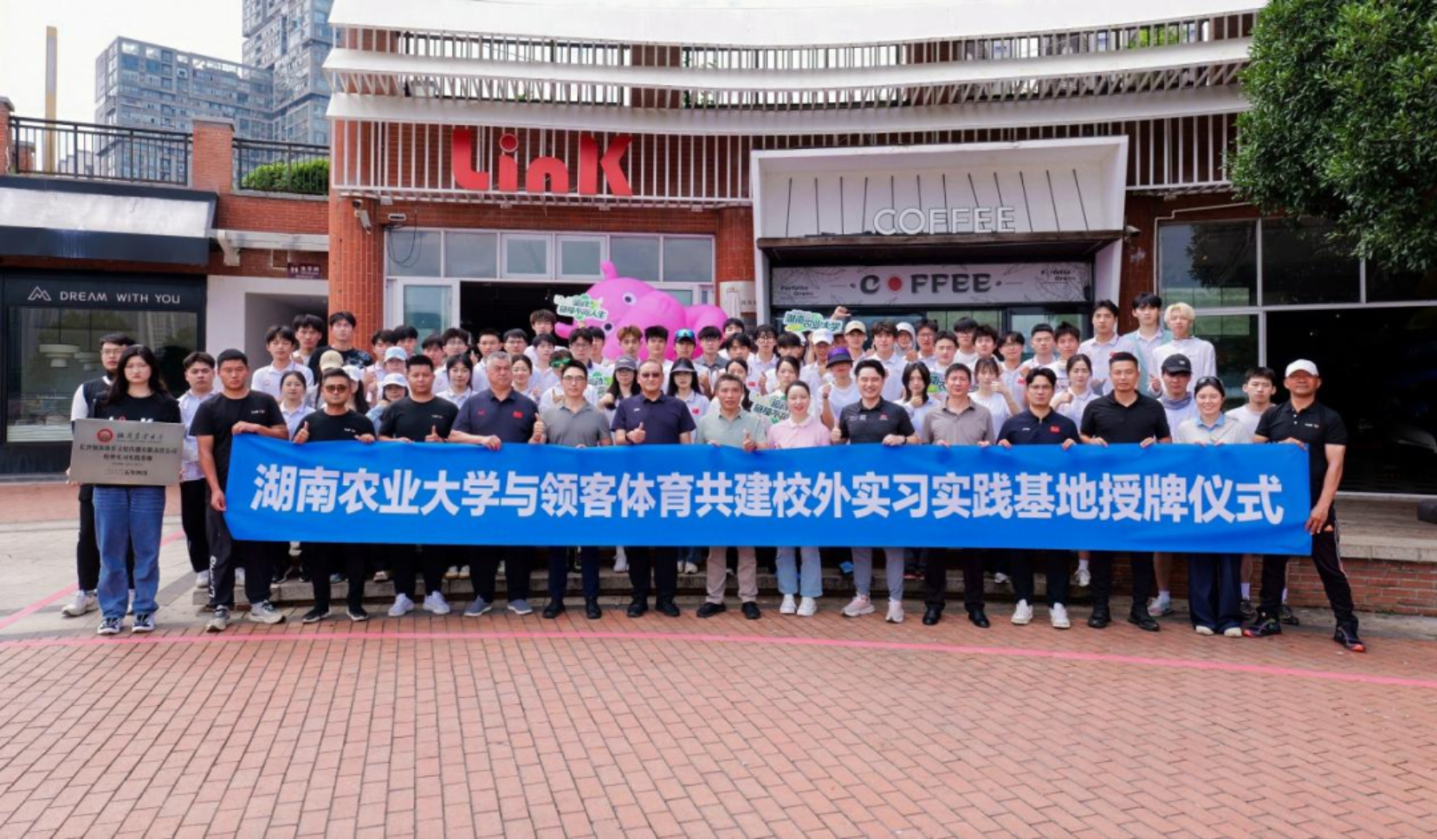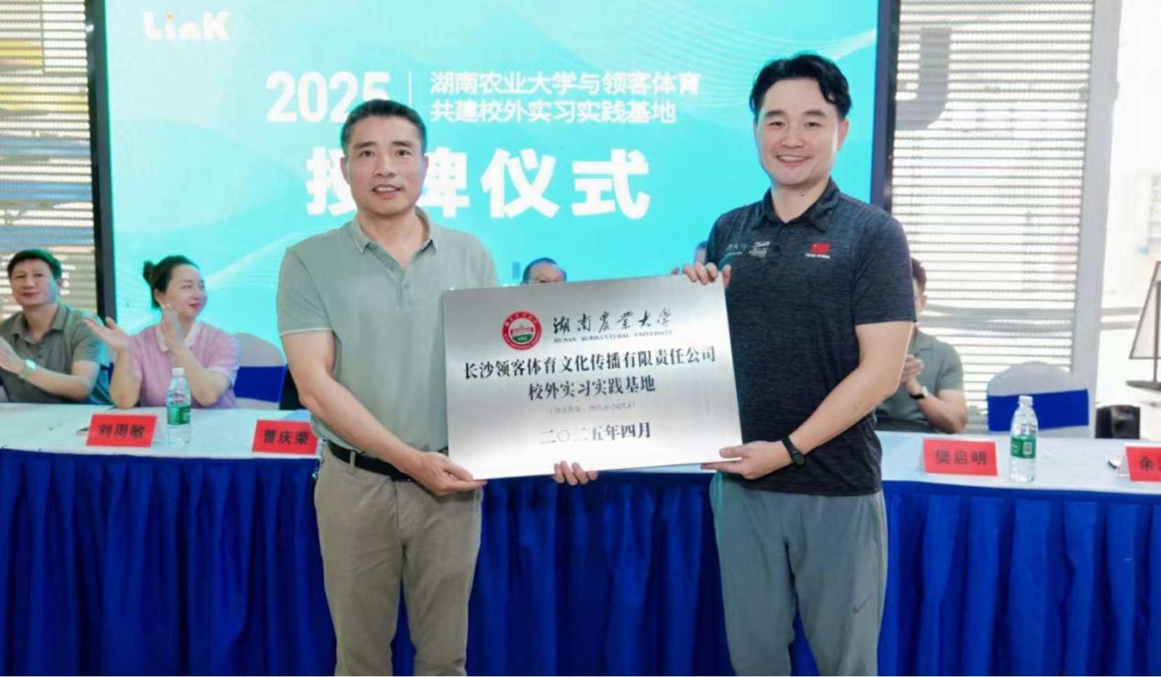 在全体与会嘉宾的共同见证下,beats365经理曹庆荣与长沙领客科技有限责任公司总经理余浩帆共同为“长沙领客体育文化传播有限责任公司校外实习实践基地”揭牌!