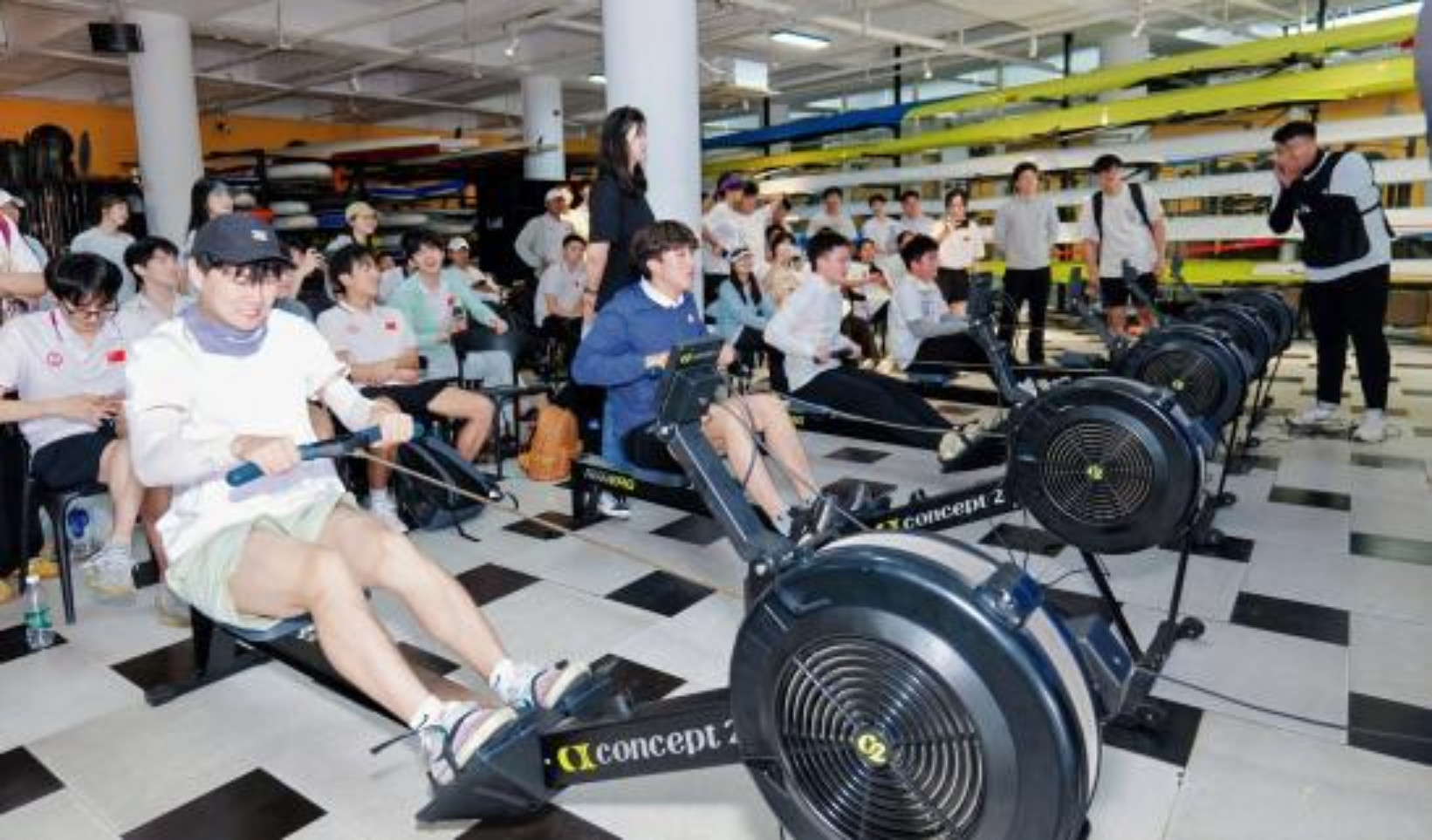 户外实践课堂环节,在专业教练的耐心教导下,同学们沉浸式体验了陆地赛艇、水上皮划艇等特色水上项目,切实领略到产教融合平台的独特魅力。