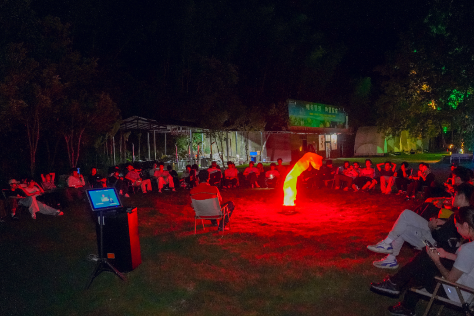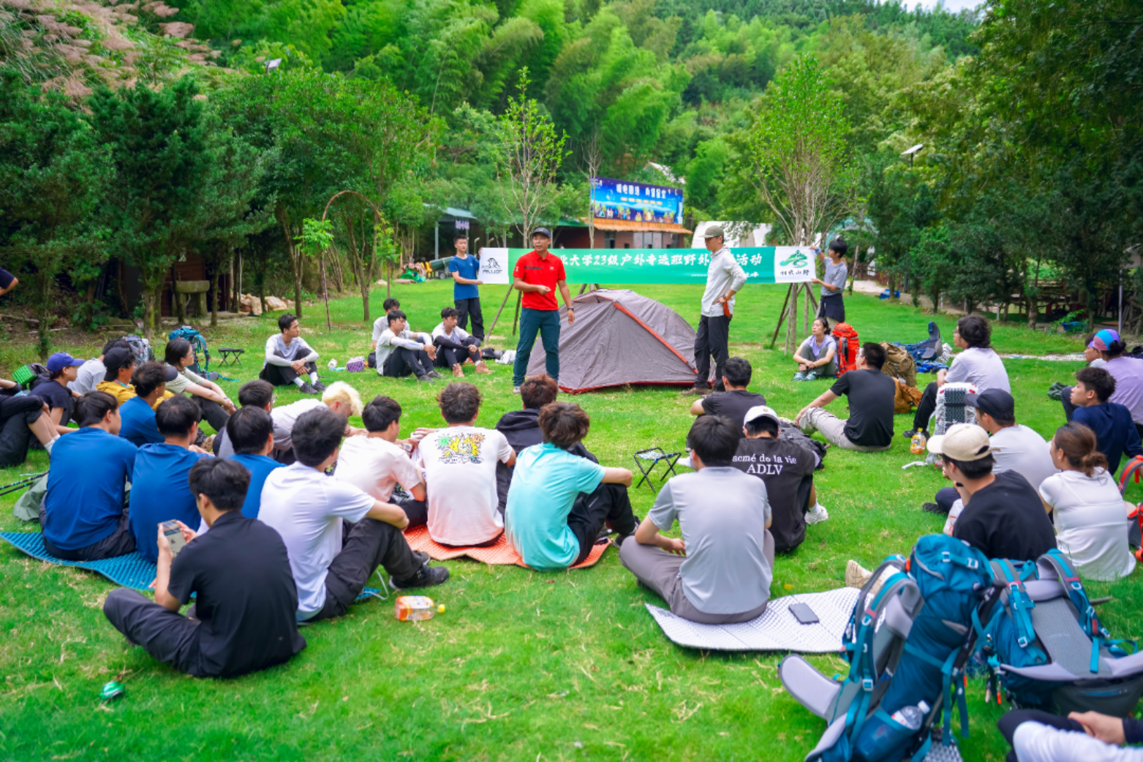 抵达龙潭风景区营地后,课程重点转向营地功能区科学划分与帐篷快速搭建技术。员工在学长和老师的指导下完成生活区、炊事区、公共活动区的规范设置,并通过团队合作形式高效完成帐篷搭建,深化野外生存规范意识。晚间篝火晚会进行了节目表演和游戏活动,活跃了营地氛围,晚会后,常洪标老师组织当日风险管理复盘会,针对途中遇到的滑石路段、天气变化等状况进行应急处置推演,同学们收获颇丰。