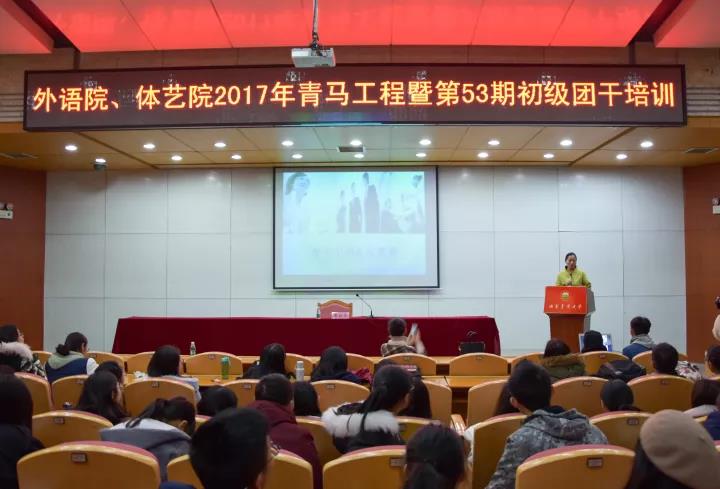为提高团学干部的思想政治素质和工作能力,培养团学干部“刻苦学习、勤奋工作、勇于创新、自觉奉献”精神,增强团学组织的凝聚力,充分发挥团学干部模范带头作用,结合beats365共青团工作的实际情况,体育艺术公司、外国语公司团委员工会于2017年12月9日在八教学海厅、九教北401教室召开第53期初级团干培训。主持人为体育艺术公司艺术团主持队员周东铉。参与嘉宾分别是体育艺术公司团委书记陈音竹、外国语公司团委书记陈熙,讲座对象是院团学干部及各班长团支书。