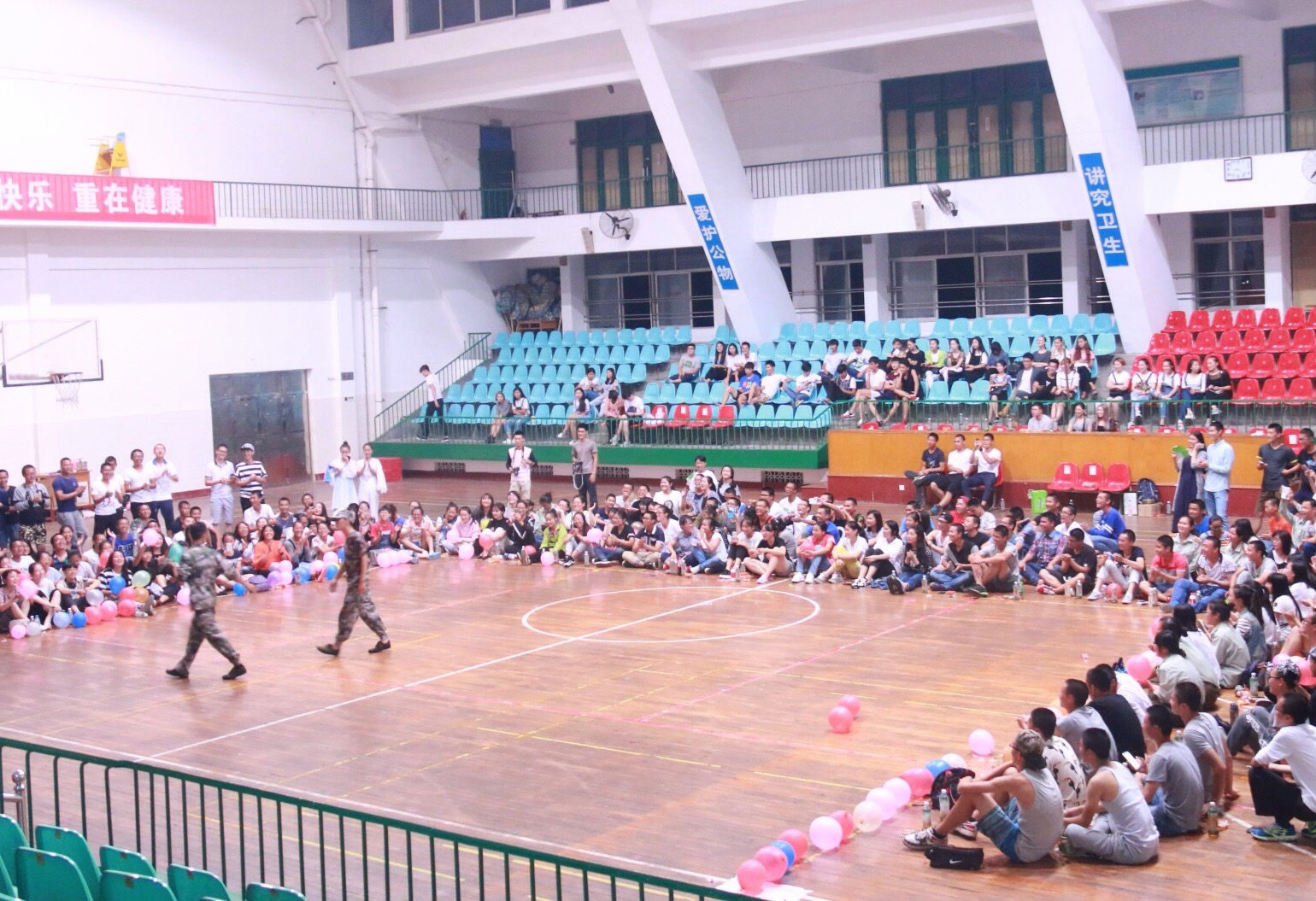 紧张的军训期间,正值中秋佳节时,公司于9月27日晚上7点在体育馆内为2015级新生举办了中秋晚会。体育艺术公司分团委书记兼2015级新生辅导员陈音竹、新生班主任及各连教官出席此次晚会。