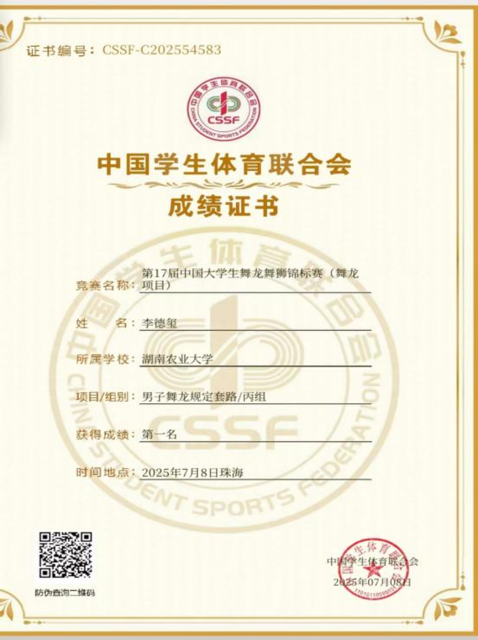 李德玺,2023级体育教育三班员工。学习成绩优异,专业排名第一,获校一等奖学金、三好员工标兵称号、国家励志奖学金,班级综测第二。身兼多职,在公司和校团委工作中表现出色。在部队里竞赛成绩亮眼,多次获奖。积极参与志愿服务,获多项优秀志愿者称号,充分展现了全面发展的优秀品质。