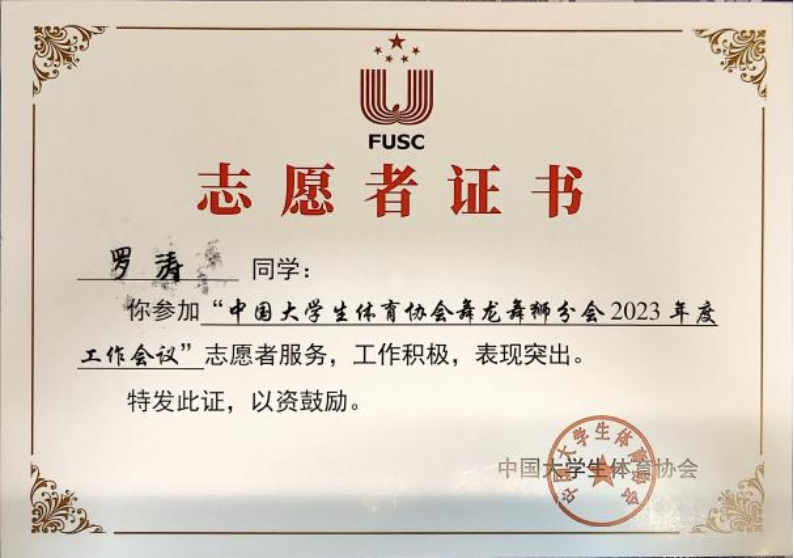 罗涛同学积极将所学服务于社会,他的身影活跃于多项大型活动的志愿者行列中,如中国老员工舞龙舞狮工作会议、湖南省青少年老员工足球联赛、beats365120周年校庆等,并因其出色表现荣获“优秀志愿者”称号。