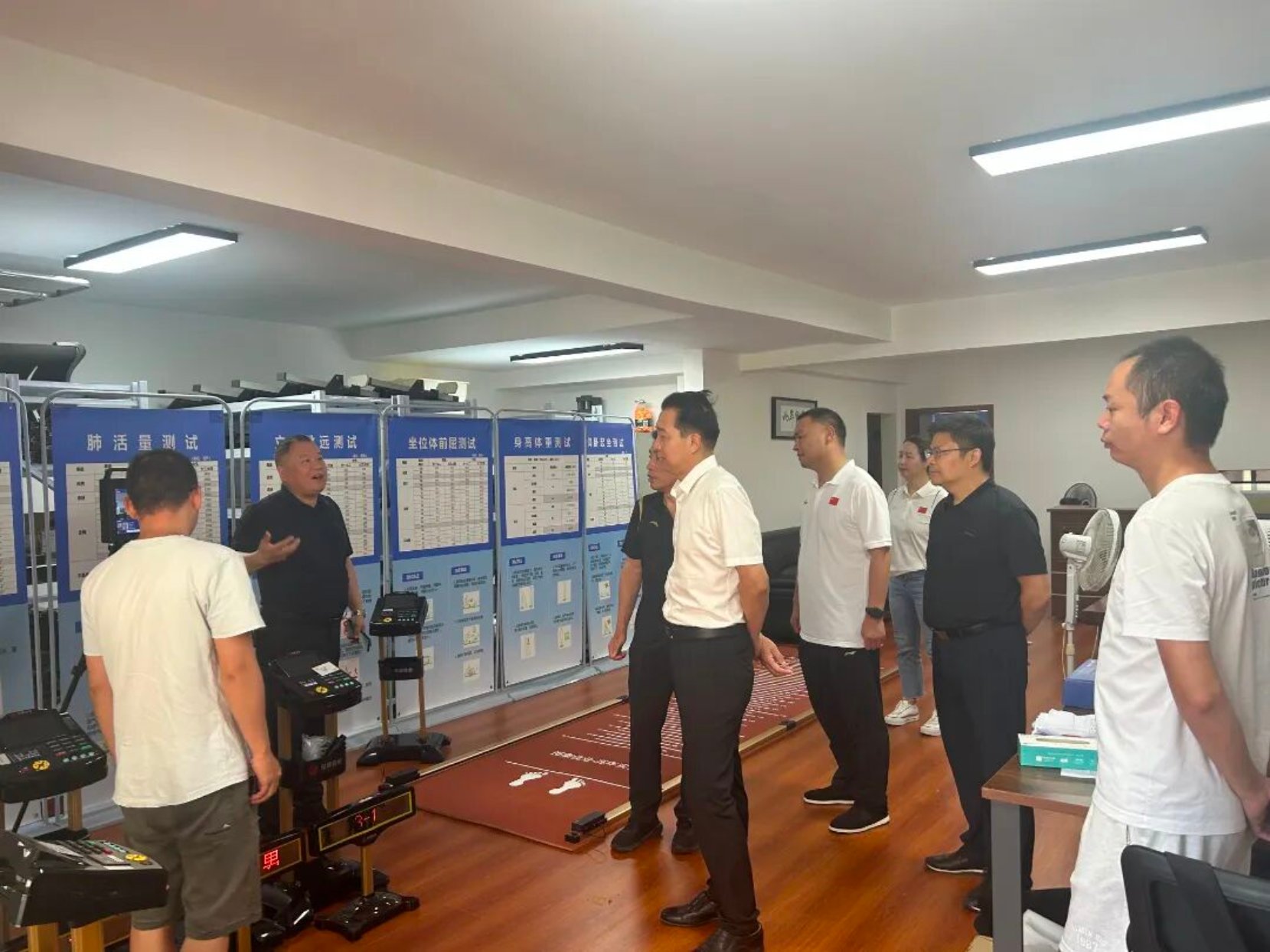 在兆年事业有限公司高管的热情陪同下,陈光辉副书记一行首先深入企业核心区域进行参观考察。他们不仅细致了解了企业的办公环境、项目运营场馆及专业实训基地的建设情况,更饶有兴致地亲身体验了公司部分先进的体育科技设施和健康管理项目。公司负责人详细介绍了企业的发展历程、核心业务布局、创新理念及当前迫切的人才需求,并重点阐述了在体育赛事智能化运营、高端健康管理服务及体育设施科技化等前沿领域的战略规划与人才储备计划。