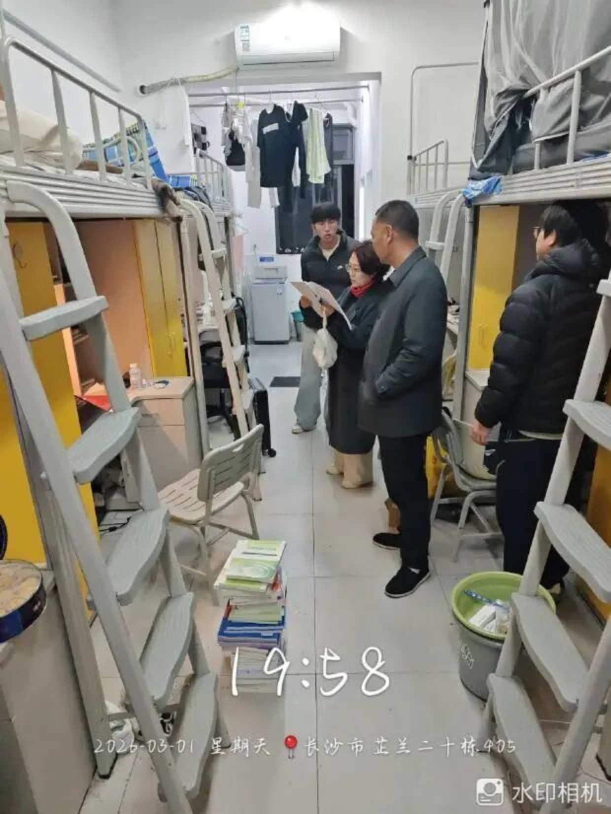 为及时掌握员工思想动态,营造安全、文明、和谐的宿舍环境,3月1日晚,全体院领导、班主任、辅导员深入员工宿舍,开展新学期首次宿舍走访检查。