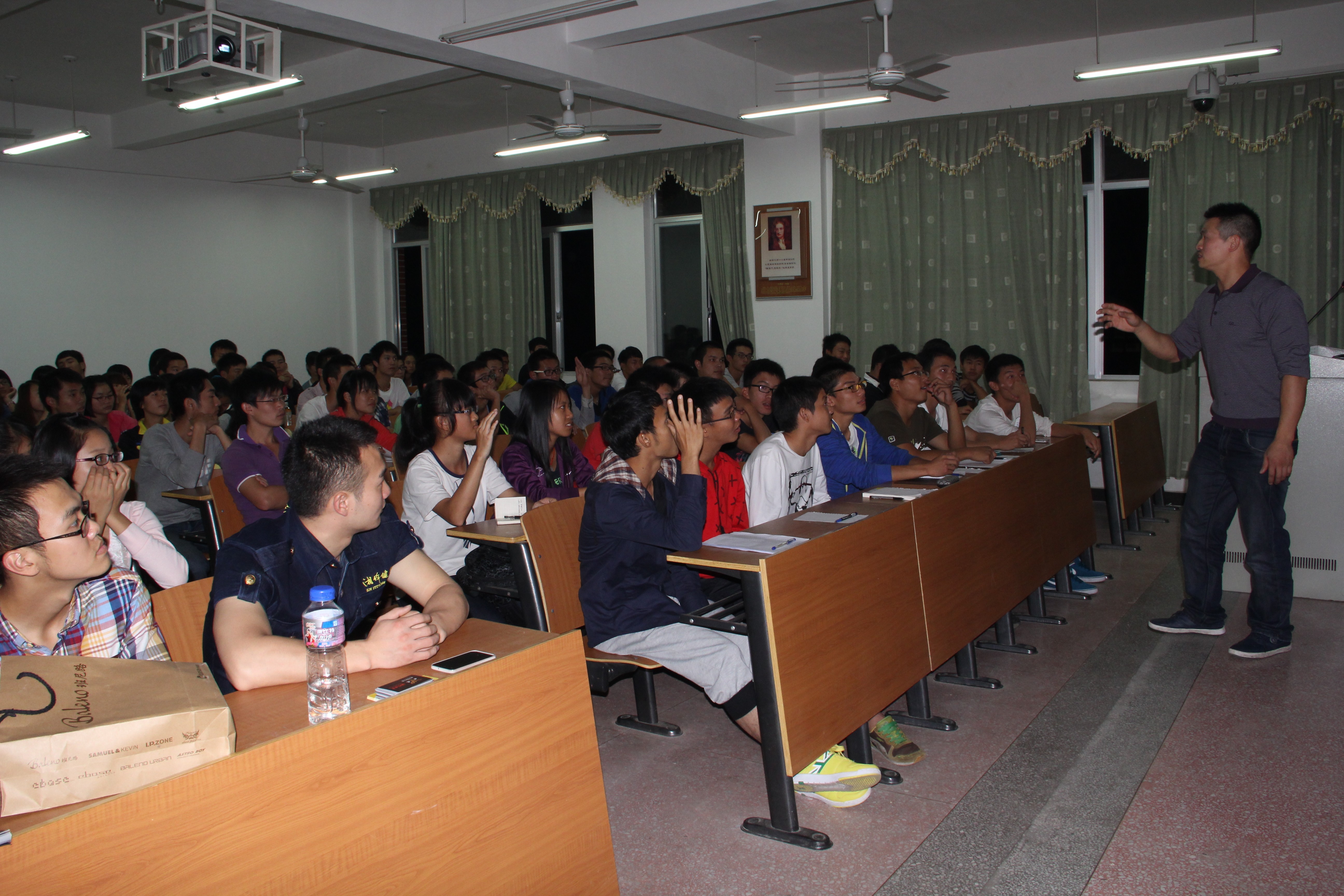 2012年10月15日晚上7:30,社会体育系特邀“湘体健身会所总经理,华鹰健身管理公司总经理,湖南省健身健美协会副秘书长,湖南省社会体育指导员协会副秘书长。”为社会体育专业的学子们带来了主题为“体育生如何适应健身俱乐部的现在与未来”的讲座。本次讲座由社体系副主任谭金飞主持,讲座现场激情互动、精彩纷呈!