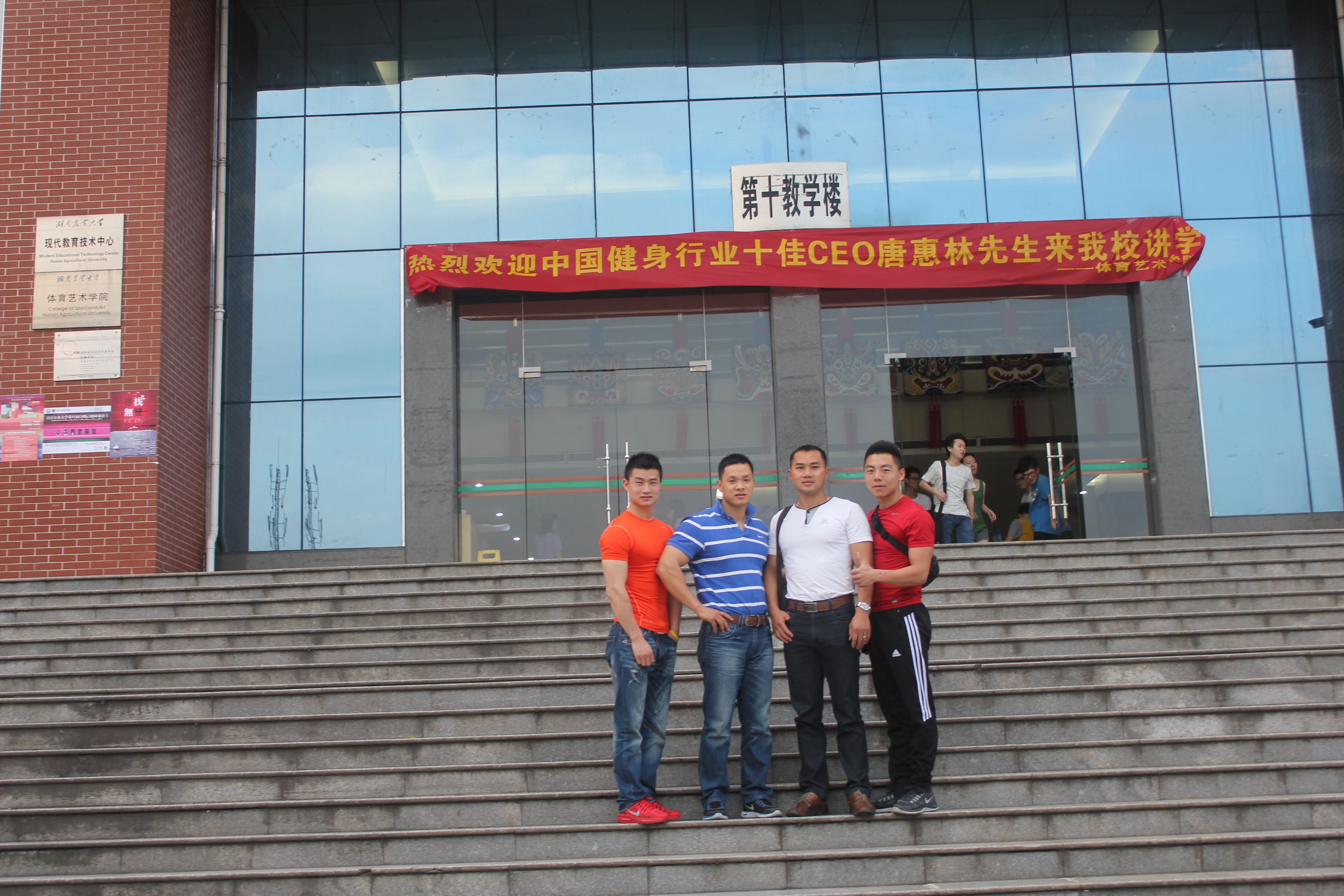 2013年6月2日19:30 ,社会体育指导与管理系特邀“70KG健美冠军;中国健身十佳CEO,湖南健身联盟负责人,中国国际体育博览会特邀讲师;湖南12家健身会所荣誉顾问和成都堡格莱斯、力德健身有限公司投资人”唐惠林先生。为公司体育专业的学子们带来了主题为“健身行业未来的发展趋势”的讲座。本次讲座由社体系副主任谭金飞主持,讲座现场激情互动、精彩纷呈!
