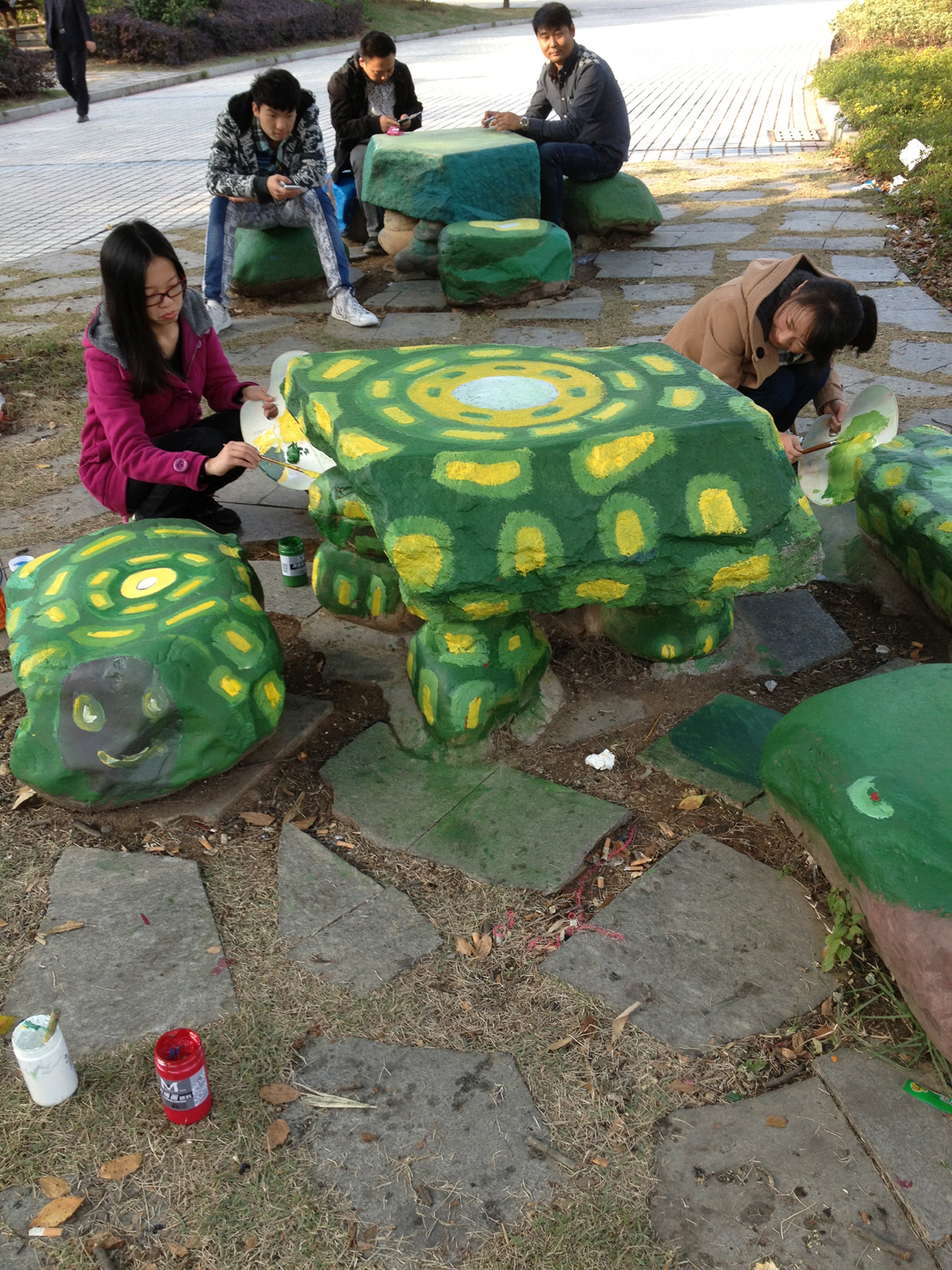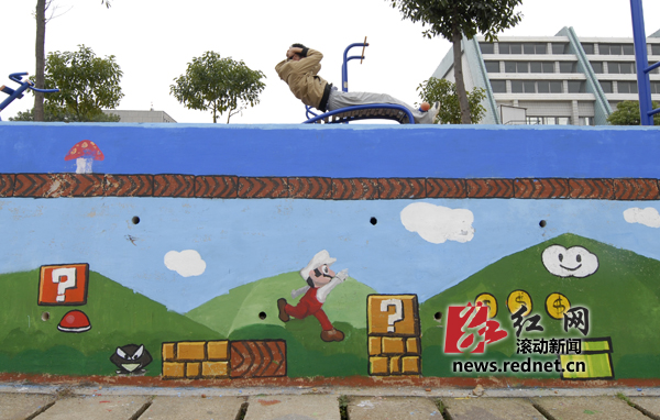 近日,在农大校园内,墙壁上到处是“超级玛丽”、“量量你的屁股”、“神秘的喜马拉雅”等等壁画作品,这些有趣的图形,卡通的漫画,幽默的视觉言语。为充实校园文化产生了重要影响,与此同时也引发了潇湘晨报、红网、设计艺术网、视觉艺术等多家媒体前来关注、报道,记者采访到课程指导教师刘丹教授,她表示艺术设计专业是一门实践性非常强的专业,课程作业可以让员工自发的通过各种手段来完成,不限制在传统的画面上完成,可以在校园的墙壁上、球场上、石凳上进行创作。“用壁画的方式完成,员工们能够更好的将理论与实践结合起来。公司从2006年开始就采用这种方式让员工完成自己的作品,“既美化了校园,又能将员工的作品更好的展示出来。”