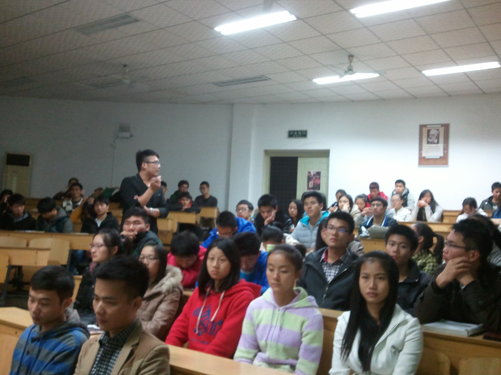 2013年11月26日19:00 ,社会体育指导与管理系联合院员工会实践部特邀诺韦耐德(香港)健身教练培训总负责人,CCDM职业规划师认证导师,湖南省健身健美协会委员,健身教练国家职业资格认证咨询顾问侯乐先生来公司进行了主题为《贵族高薪行业之健身教练》的讲座。讲座在七教新T1教室进行,参加的员工有表演系和社会体育指导与管理系的员工及公司健身爱好者,侯乐先生主要从以下三个方面进行了论述:2014年就业前景分析;体育专业就业方向解析;健身行业就业前景展望。