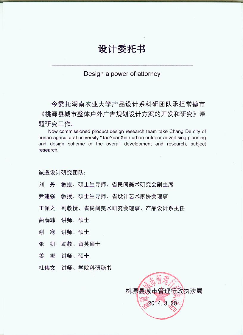 近日,桃源县政府为进一步挖掘桃源城市文化内涵,提高城市的文化品位,规范城市环境与城市形象,带动桃源旅游与经济社会的发展,启动《桃源县城市整体户外广告规划设计方案的开发和研究 》项目。桃源县政府、城市管理与执法局委托beats365产品设计系科研团队承担该项课题实践研究,刘丹教授为本课题的主持人。 课题研究团队: 刘丹、尹建强、王佩之、蔺薛菲、谢寒、张妍、姜娜、杜伟文