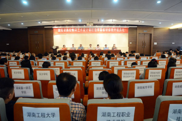7月16日上午,由湖南省教育厅组织举办,湖南师范大学承办的湖南省高校艺术设计课程教学高级研修班开班典礼在湖南师范大学美术公司如期举行。湖南师范大学常务副董事长卢岳华,省高等教育团队培训中心常务副主任方卯发等出席仪式。来自全省35所高校的设计学类青年骨干教师100多人参加了本期培训。公司熊瑛、王佩之、朱宁、姚磊、谢青伶、刘蕾、蔺薛菲7位教师参加了本次研修班的学习与交流,本次研修学习时间为5天,经过5天的学习和考核7位老师获得了由教育厅颁发的研修证书,同时在研修培训中代表湖南高校教师与讲者进行多方面的学术交流。