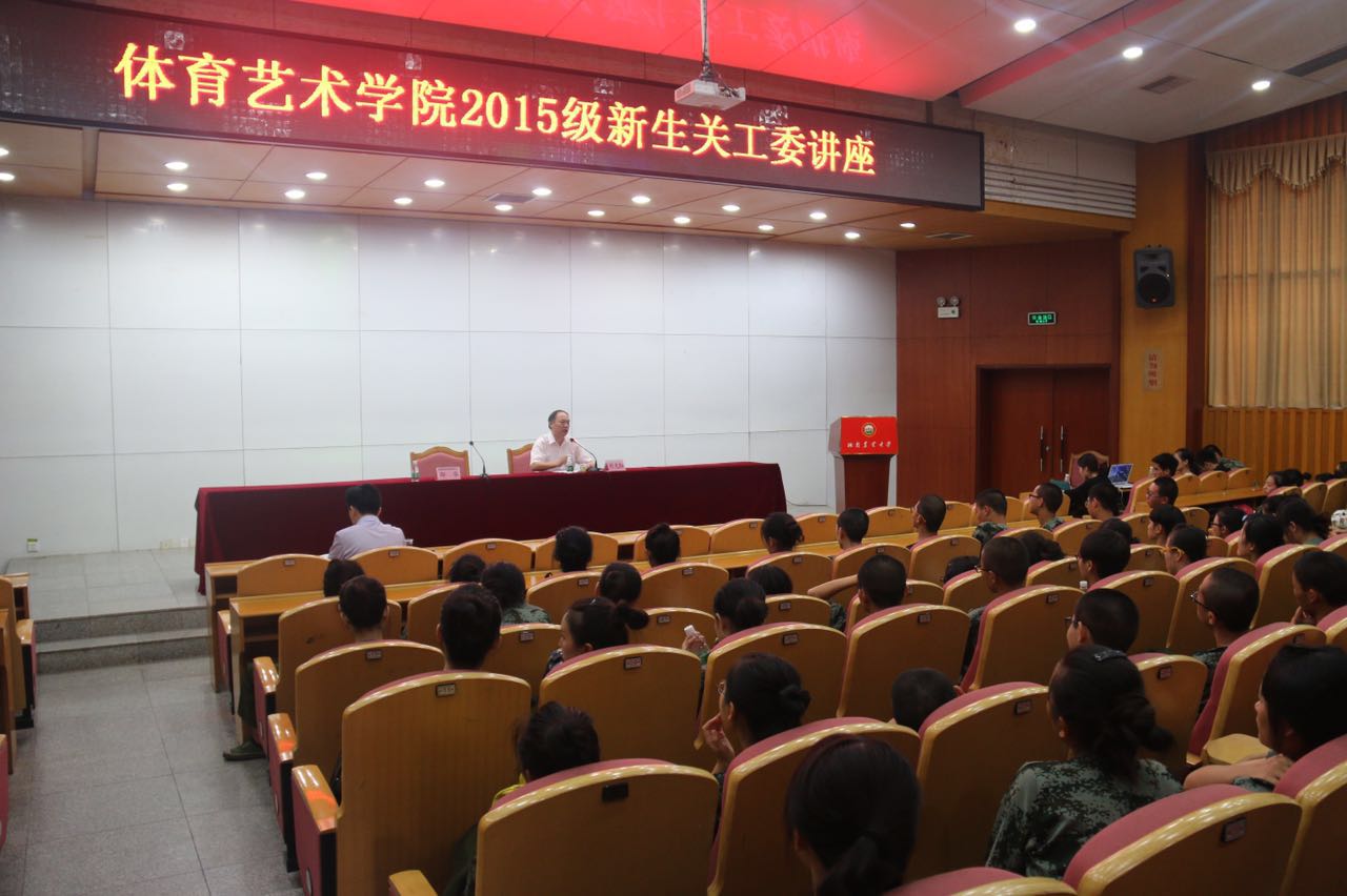 2015年9月5日下午15:30在八教学海厅,举办了一场面对全体新生的关工委讲座。主讲人彭克勤督导,讲座主题“爱国爱校爱公司,诚信做人做学问”。讲座主持人是体育艺术公司党委副书记兼副经理邵华。参加人员是院团委书记陈音竹老师以及全体团委员工会成员以及2015级新生。彭教授的讲座生动精彩,幽默诙谐,报告厅内掌声不断。