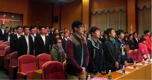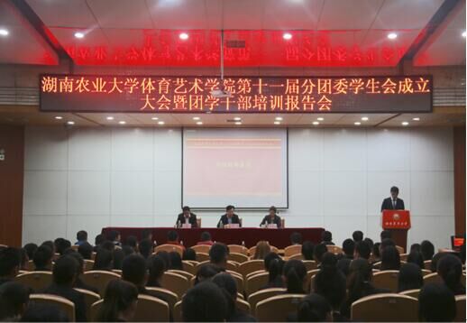 大会伊始,全体人员奏唱团歌。院分团委书记陈音竹宣读了体艺院第十一届分团委员工会干部名单并颁发聘书。