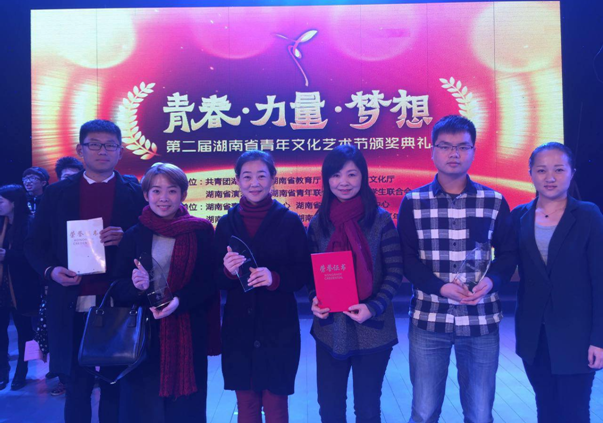 由省教育厅、团省委组织的以“青春•力量•梦想”为主题的第二届湖南省青年文化艺术节于2015年4月份开幕。此次比赛参与高校二百多所,近15万名青年报名参加了此次大赛,5千多名选手参加了决赛。体育艺术公司分团委艺术团积极响应校团委号召,组织了舞蹈、摄影、绘画、演讲、声乐等多个比赛项目。2015年12月,经过专家评审,比赛结果终于揭幕。体育艺术公司共获得金奖两项,银奖一项,铜奖三项,优秀奖三项。其中,集体舞《狼图腾》(粟琳等)获得金奖;演讲《从梦想到距离,只有两个字——坚持》(朱学奕)获得金奖;绘画《致青春》(杨兵)获银奖;摄影《迈向梦想的背影》(潘乔)、声乐《亲爱的小孩》(何心怡)、动漫《黑夜中的舞动》(彭宇)获铜奖;摄影《遇见》(杨佳欣)、《择》(邹火明)、动漫《中国梦系天下》(倪文龙)获个人优秀奖。