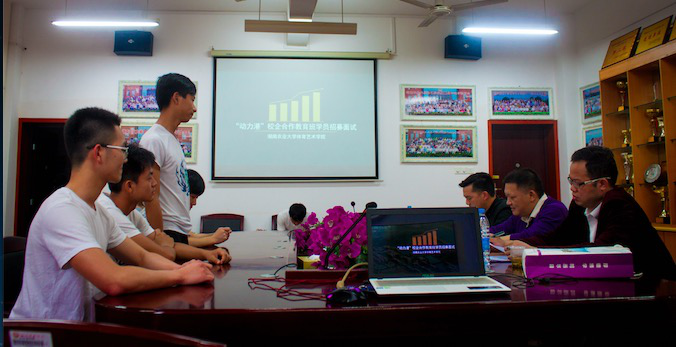 2016年4月14日,由株洲市动力港体育运动有限公司与体育艺术公司联合创办的首届“动力港”校企合作教育班招募面试会在第十教学楼南104举行。株洲市动力港体育运动有限公司董事长陈森华、株洲市动力港体育运动有限公司副总经理陈云华、体育艺术公司党委副书记兼副经理何伟光出席并对58名报名学员进行面试考核。
