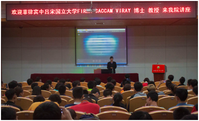 5月26日下午四点,菲律宾中吕宋国立大学FIRMA CACCAM VIRAY教授在第八教学楼学海厅为体育艺术公司员工进行了题目为“社区福利服务:推动国家建设和发展”的学术讲座,体育艺术公司13、14、15级社会体育指导与管理专业和15级体育教育专业同学均到场学习。