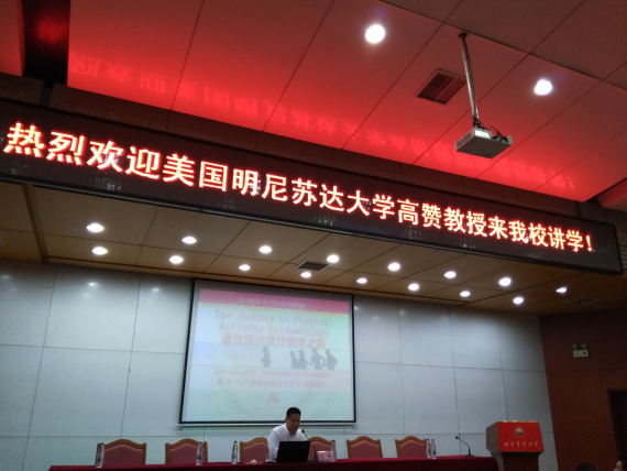 (体育教育系 齐立斌 刘周敏)6月15号下午4:00,受体育艺术公司的邀请,美国明尼苏达大学运动流行病学实验室主任高赞教授在第八教学楼“学海厅”作了主题为“通往体力活动的流行病学之路”的学术报告。体育艺术公司副经理曹庆荣教授主持了报告会,李骅经理等公司领导、体育专业老师、研究生、本科生聆听了讲座。