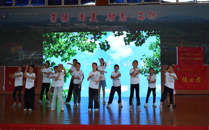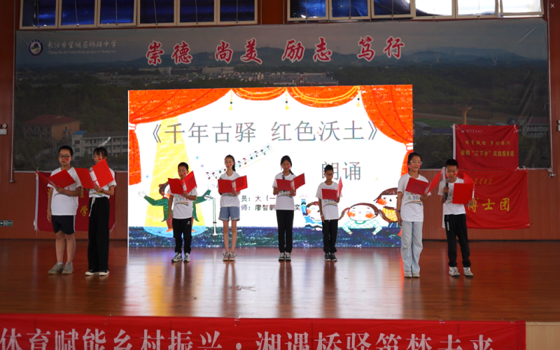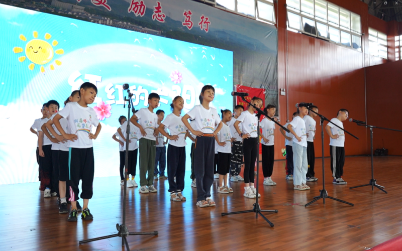 孩子们身着统一的桥驿文化衫,以饱满的热情和精湛的技艺,向在场的观众展示了他们在夏令营期间学到的各项才艺。彩带龙舞动的矫健身姿、篮球操中洋溢的青春活力、合唱《红红的太阳》中传递的爱国情怀……每一个节目都凝聚了孩子们的努力与汗水,也展现了他们积极向上的精神风貌。志愿者们也纷纷登台献艺,用歌声与舞蹈表达了对桥驿的深情厚谊与美好祝愿。