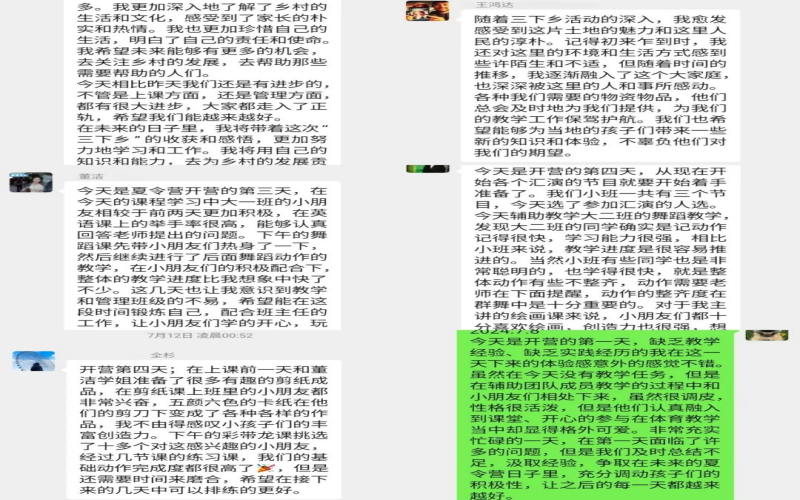 为期十二天的三下乡社会实践对于人的一生,就像一滴水无声的流进了大海里,但是对于我来说,却是一笔十分宝贵财富。通过支教活动,我能够直接与员工互动,帮助他们学习新知识,同时也能感受到教育的力量和影响,深刻理解到教育对于个人和社会的意义。