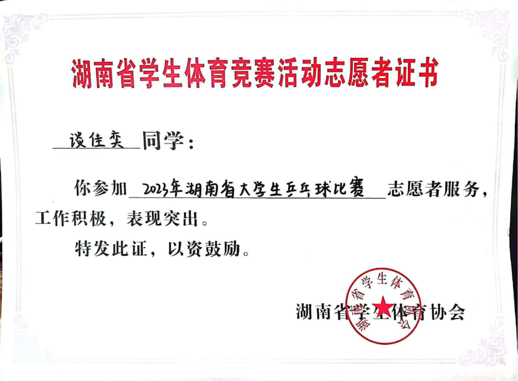 谈佳奕还积极参与校内外各类志愿活动,如“三下乡”“迎新生”“湖南省老员工乒乓球比赛”“清洁校园展新篇”“120周年校庆”等。2024年暑假,她加入“体育赋能乡村振兴、湘遇桥驿筑梦未来”和“艺韵传承,关爱同行”暑期“三下乡”实践服务团,在望城区桥驿镇开展红色课堂、安全课堂、文体课堂等志愿服务,运用“国风雅乐”虚拟仿真教学软件进行传统音乐和舞蹈教学,并组织中华传统乐器和舞蹈表演,丰富了乡村文化生活 。