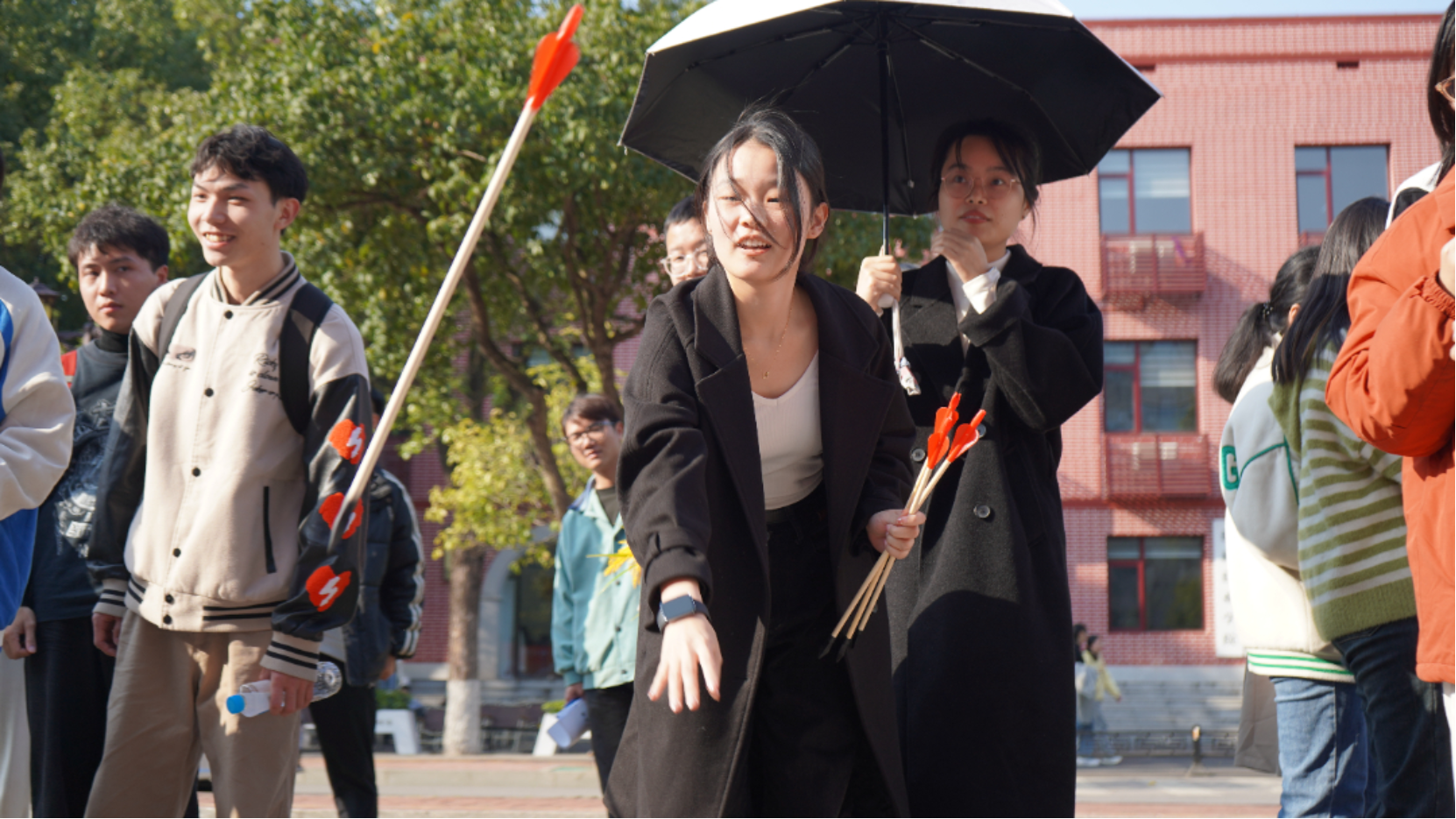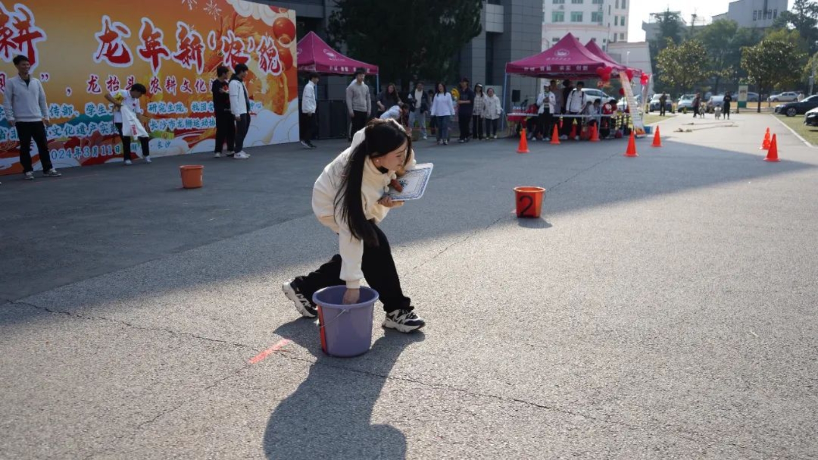 比赛规则:每场比赛两支队伍同时进行,每4人一组,距离20米相向站立(1号队员“播种”,2号队员收获),1号队员手拿盛着“种子”的盘子出发,裁判开始计时,1号队员在每个标志物中种下一枚“种子”,标志物放完后,把盘子交给对面的2号队员。2号队员手拿盘子把1号队员播下的“种子”一个个收回,交给下一名队员进行播种,依次往返,当最后一名队员到达终点后结束计时。用时最短的队伍获胜并取得相应奖品。