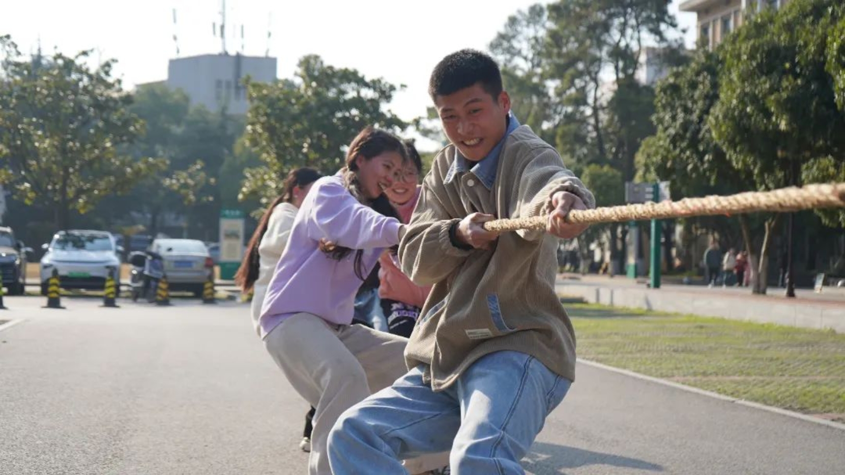 比赛规则:每场比赛两支队伍同时进行,比赛开始,各队队员在绳的两端准备好,使绳的中点在中点线上,裁判发令后,双方开始用力拔河,将绳子中端拉过指定区域内的队伍赢得比赛。比赛采取[三局两胜制],获胜的队伍获得相应奖品。