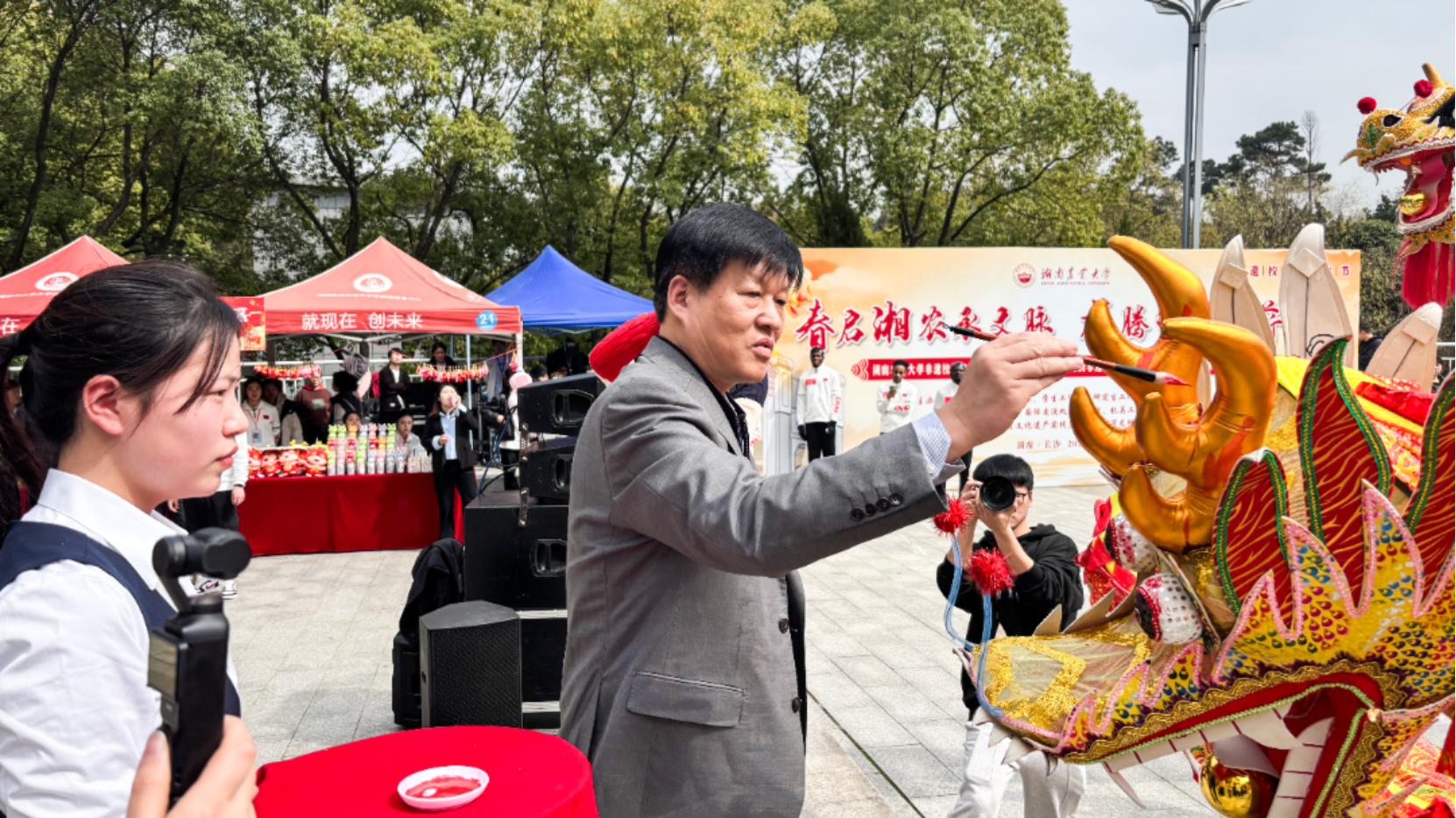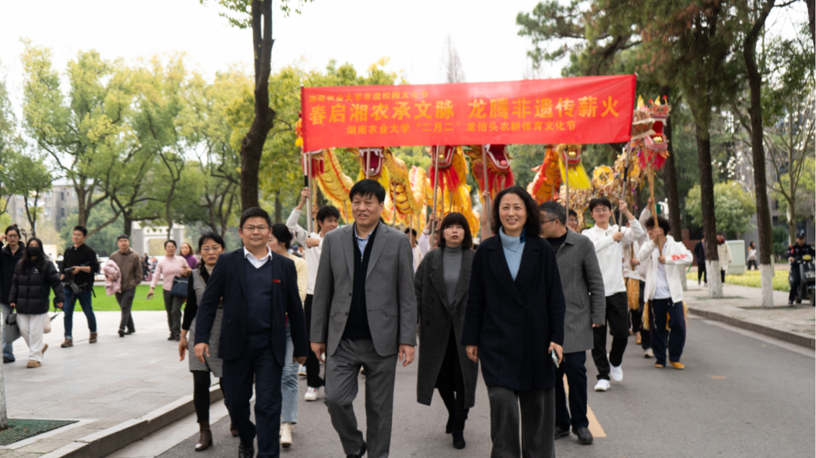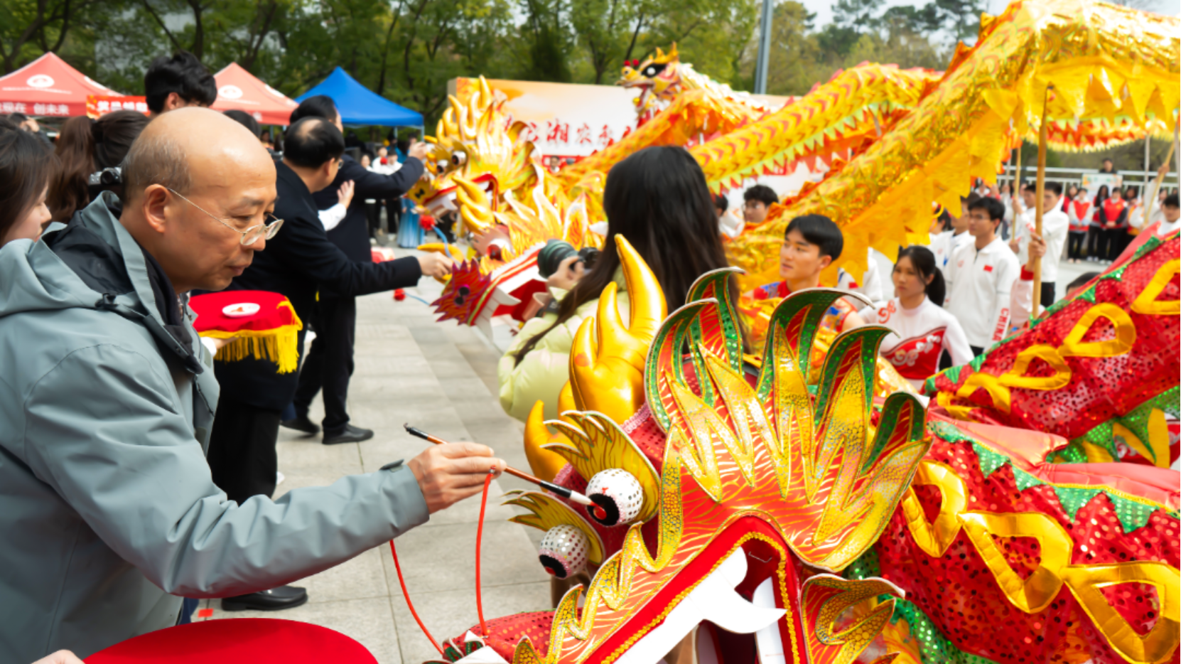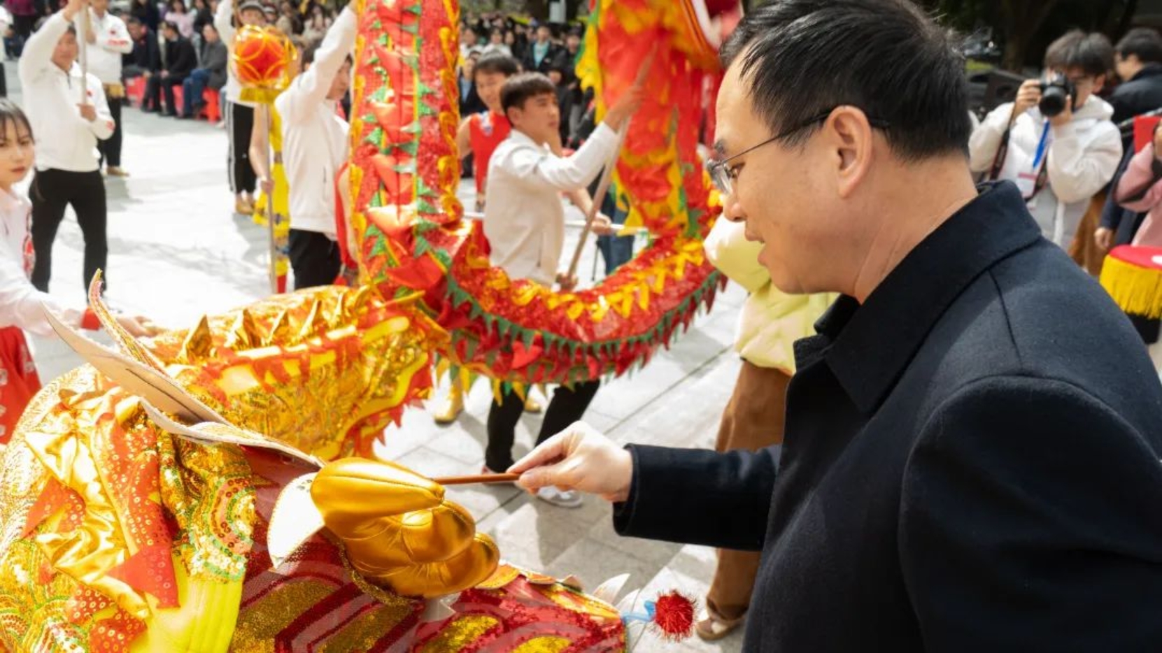 春龙昂首瑞云翔,农耕启处韵悠长。“二月二,龙抬头” 又被称为春耕节、春龙节。2月27日,公司在修业学堂校门隆重举行beats365非遗文化节暨“春启湘农承文脉 龙腾非遗传薪火”“二月二 龙抬头”农耕体育文化节活动。公司党委委员、副董事长吴波,党委副书记陈光辉,党委委员、副董事长杨国顺,纪委书记梁先明出席开幕式,手执朱砂笔为祥龙点睛。笔锋落处,是对湘农事业锐意进取、勇攀高峰的美好祝愿;是对湘农学子目及四海、胸怀天下的殷殷期盼;是对农耕文明声传寰宇、永续薪火的诚挚祝福。