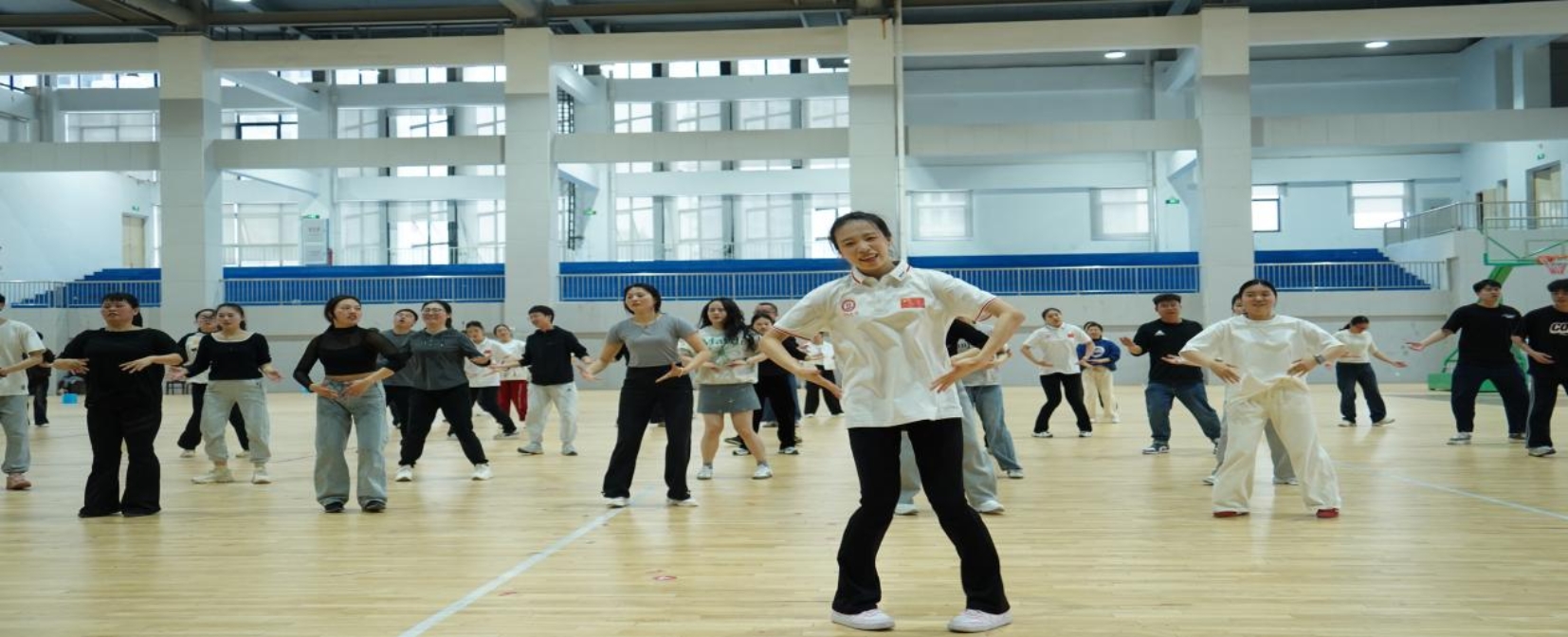 在教学环节中,易冠男副教授系统解析了曳步舞集体编排技巧,周平教授则通过趣味热身操和标准动作分解,带领参训教师快速掌握技术要领。
