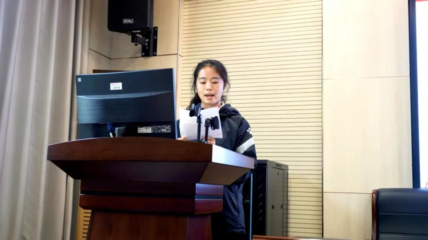 7位参赛选手 一一上台讲述了自己独特的人生经历及其自强不息的精神,充分展现了公司学子坚韧不拔的意志和力争上游的勇气和力量。值得一提的是,费艳云在2023年家庭变故后,以日夜苦读和赛场拼搏回应命运,荣获多项国家级奖项;陈可欣家中三孩求学、老人医疗开销巨大,却将经济压力化为动力,以坚韧毅力立志改变命运;张译心自大一便通过家教、商演等兼职实现经济独立,主动为家庭减负,品学兼优......他们以坚韧为笔、奋斗为墨书写的“自强”精神,是值得所有人品读的人生华章。