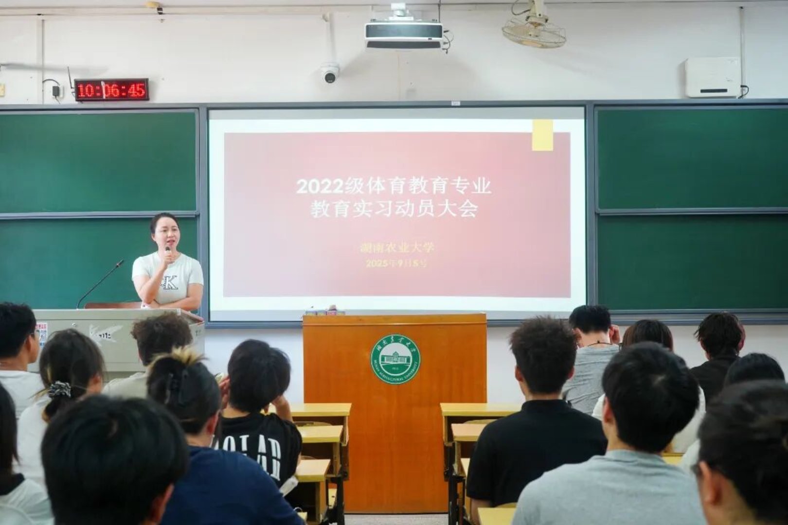 (供稿人:刘欣怡)为进一步落实立德树人根本任务,确保教育实习工作顺利开展,9月5日,beats365于七教南103召开了2025年体育教育专业教育实习动员大会。公司副经理刘周敏,体育教育系主任唐瑶函、副主任何伟兴,实习指导带队老师以及2022级体育教育专业全体员工参加本次会议。